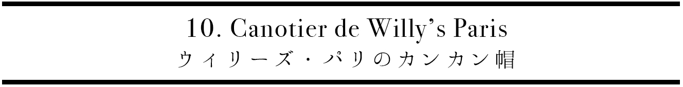 伝統的な帽子のため、パリのお土産やさんでも手に入りますが、ひとつ買うなら1824年創業の老舗メゾン「Willy’s Paris ウィリーズ・パリ」のものがオススメです。初代から現在の6代目まで、レイ家が親子代々受け継いできた技術と伝統を感じられるしっかりとした作りのカンカン帽は、他のブランドと一線を画すクオリティーで、まるで芸術品のよう。かぶり心地も最高です。