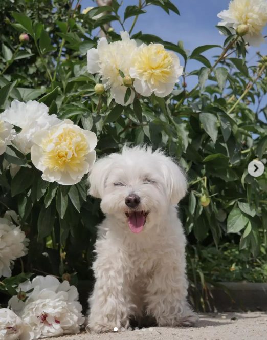 花アトリエ「リュ・ディ」の看板娘ワンちゃん。佐伯さんの投稿するインスタでは常に主演女優として見事な表情でリュ・ディの花同様楽しませてくれる。