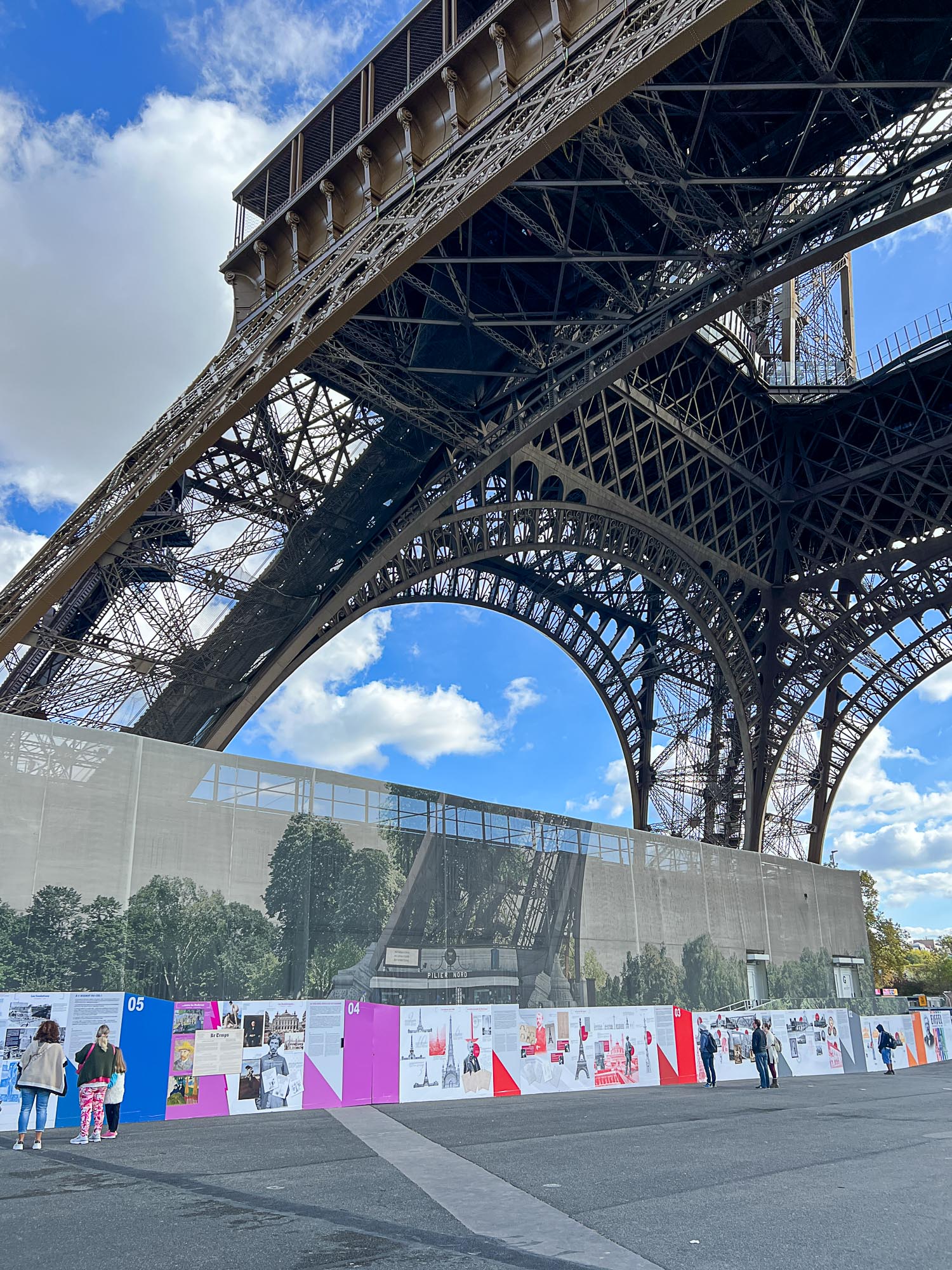 解説はフランス語・英語・スペイン語ですが、ここで初めて公開されるような貴重な資料もあり、写真やイラストを眺めるだけでも興味深い内容です。エッフェル塔に行ったらぜひ、中庭のこの展示を見てくださいね。