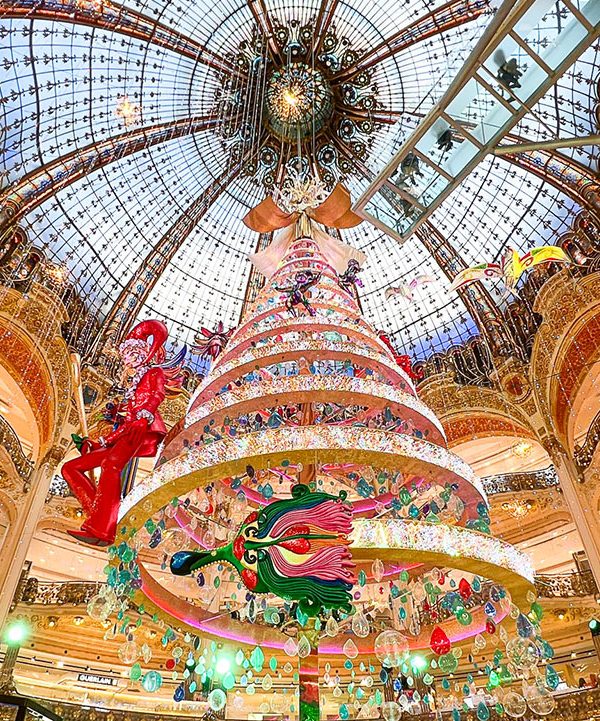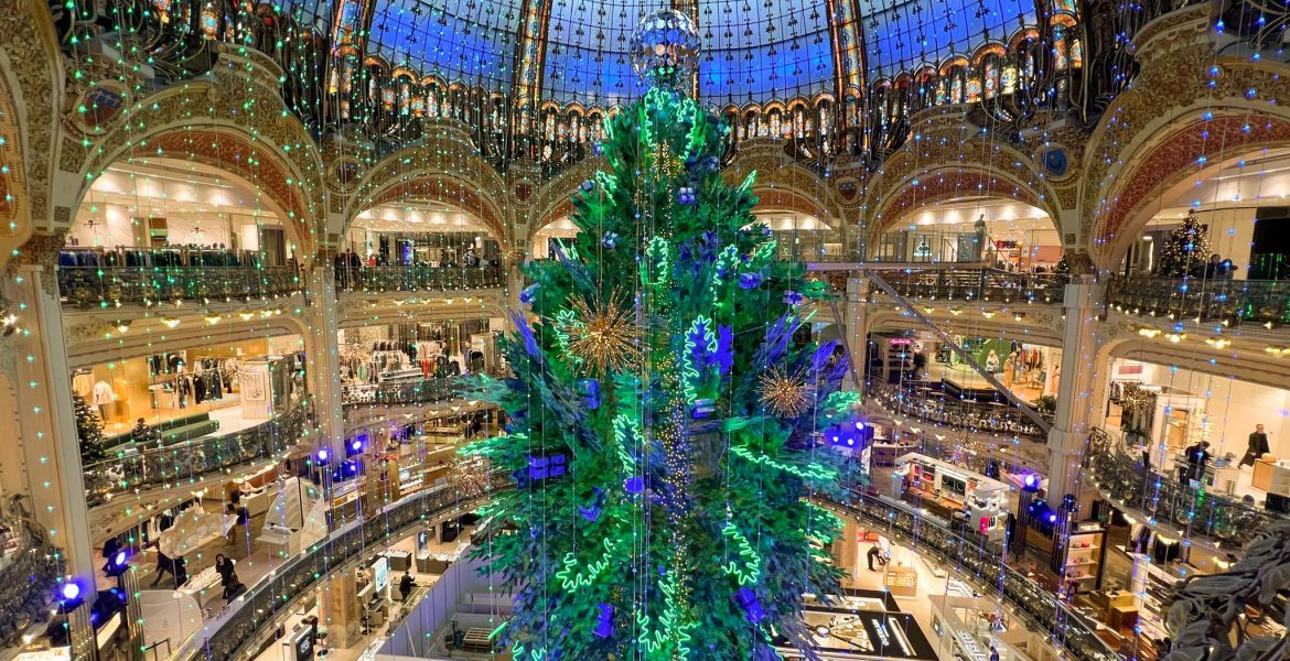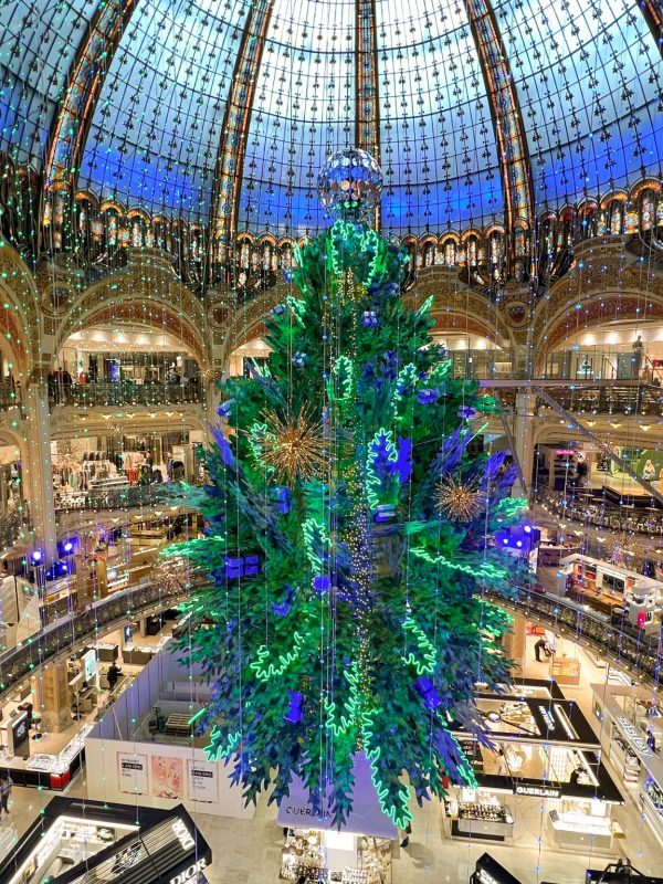 毎年注目を集める、オスマン通りのギャラリー・ラファイエット本館ドーム下の巨大クリスマスツリーが今年も登場しました!2015年はゴールド、2016年はホワイト、そして2017年はポップでカラフル、2018年はちょっとシックなグリーン、2019年はクラシカル、2020年のキュートなツリー、2021年のカラフルなツリーに続き、今年のツリーは・・・?