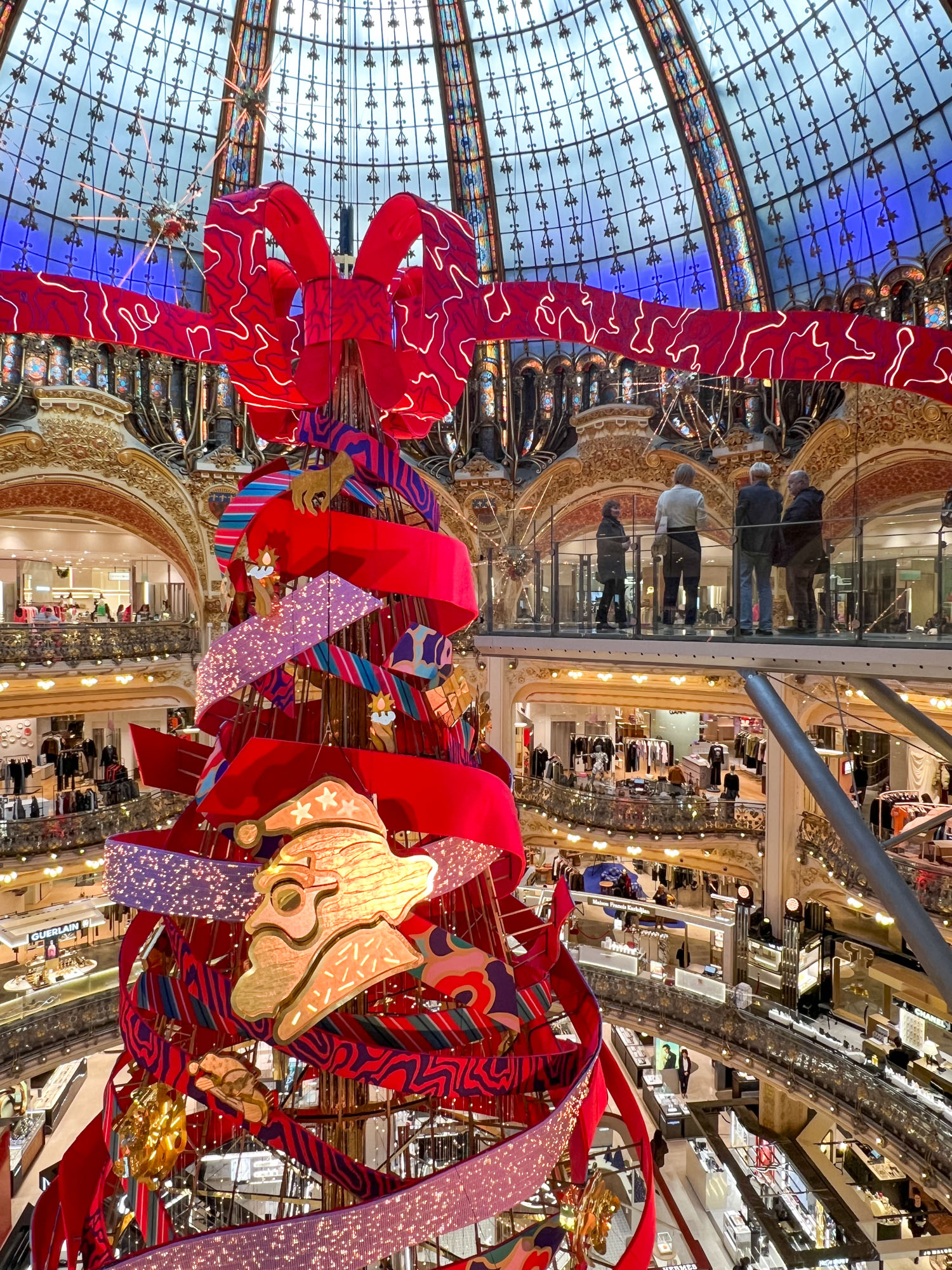 毎年注目を集める、オスマン通りのギャラリー・ラファイエット本館ドーム下の巨大クリスマスツリーが今年も登場しました!2015年はゴールド、2016年はホワイト、そして2017年はポップでカラフル、2018年はちょっとシックなグリーン、2019年はクラシカル、2020年のキュートなツリー、2021年のカラフルなツリー、2022年のグリーン、2023年の螺旋状のツリー、2024年の玉虫色のツリーに続き、今年のツリーは・・・?