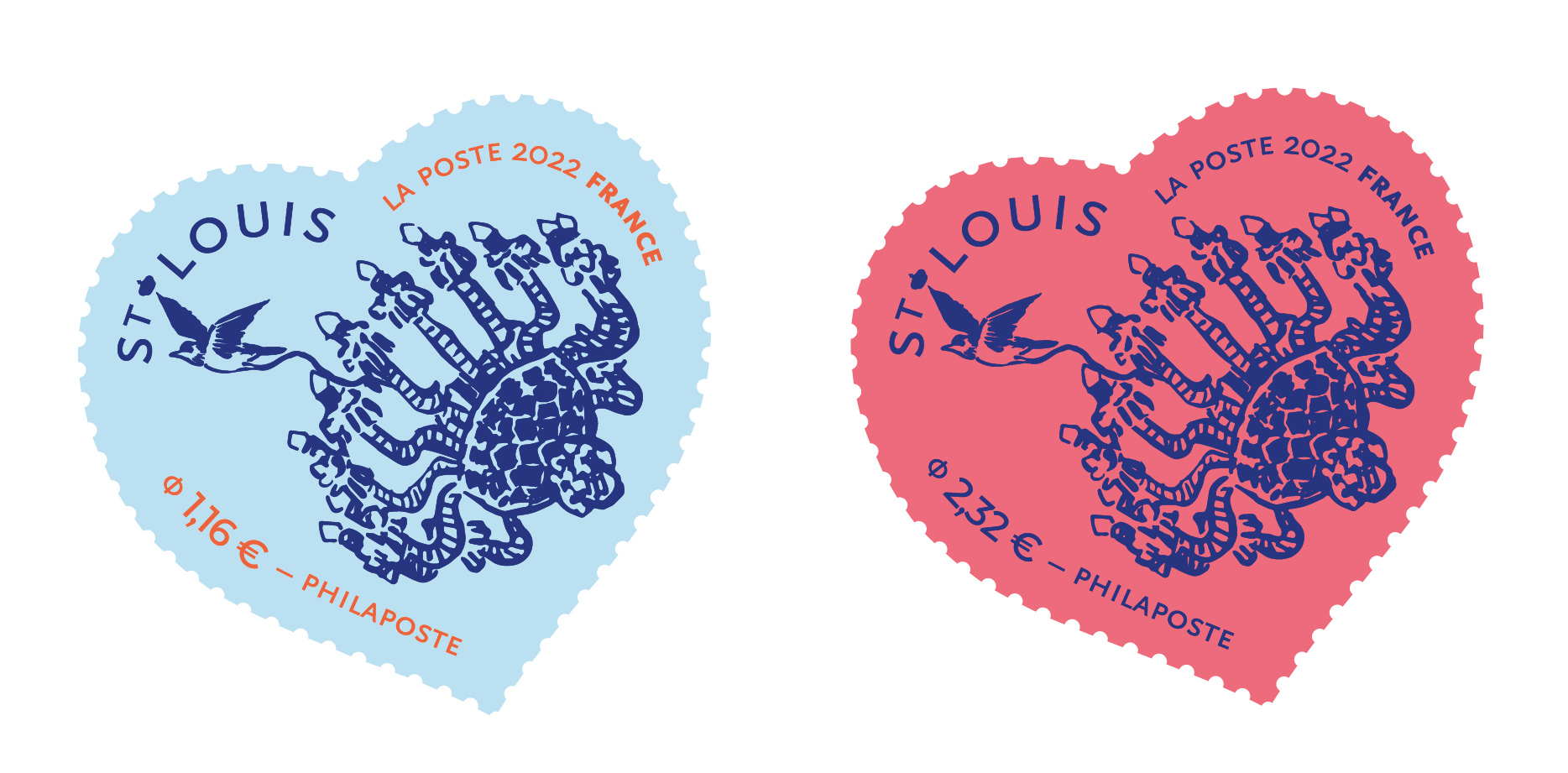 2000年以来、毎年この季節にフランス郵便が発売するバレンタインデーの記念切手は、フランスを代表する著名デザイナーや老舗メゾンとのコラボで人気を集めています(→過去のバレンタイン記念切手はこちら)。2022年のバレンタイン切手を手がけるのは、クリスタルメーカーのサン・ルイ(Cristallerie Saint Louis)。今年は、フレネルレンズの発明から200年、ツタンカーメンの墓からエジプトガラスが発見されて100年目にあたり、国連が「国際ガラス年2022」を提唱していることもあり、人類の文明や経済の発展に欠かせないガラスという素材を称える記念すべき年でもあります。