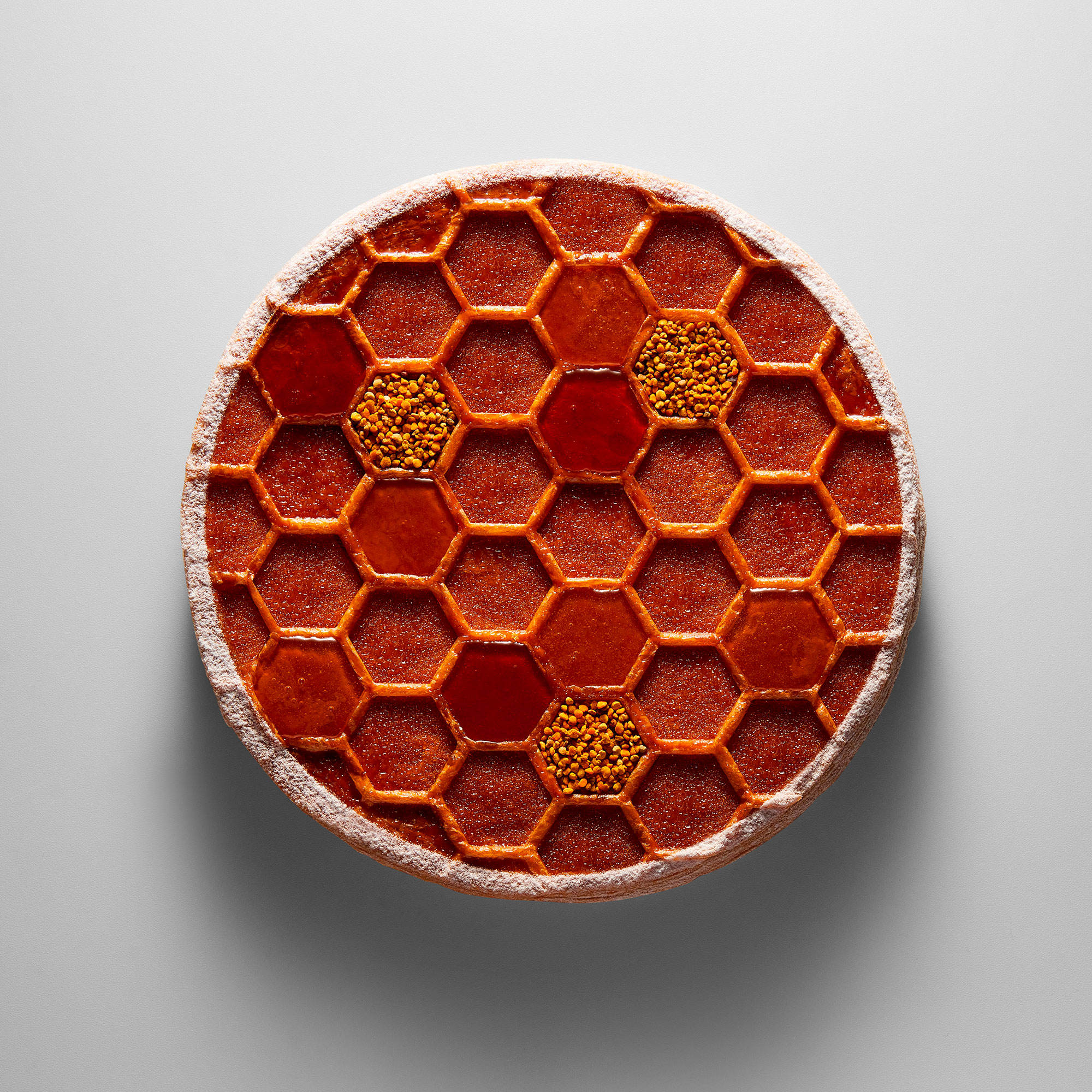 そして、新年を迎え、1月6日のエピファニーをお祝いするのに欠かせないフランス伝統のお菓子ガレット・デ・ロワ。特別なシグネチャーガレットは、ビュッシュと同じく柑橘と蜂蜜の味わい。蜂の巣をかたどった繊細なデコレーションが美しい…1個65ユーロ。