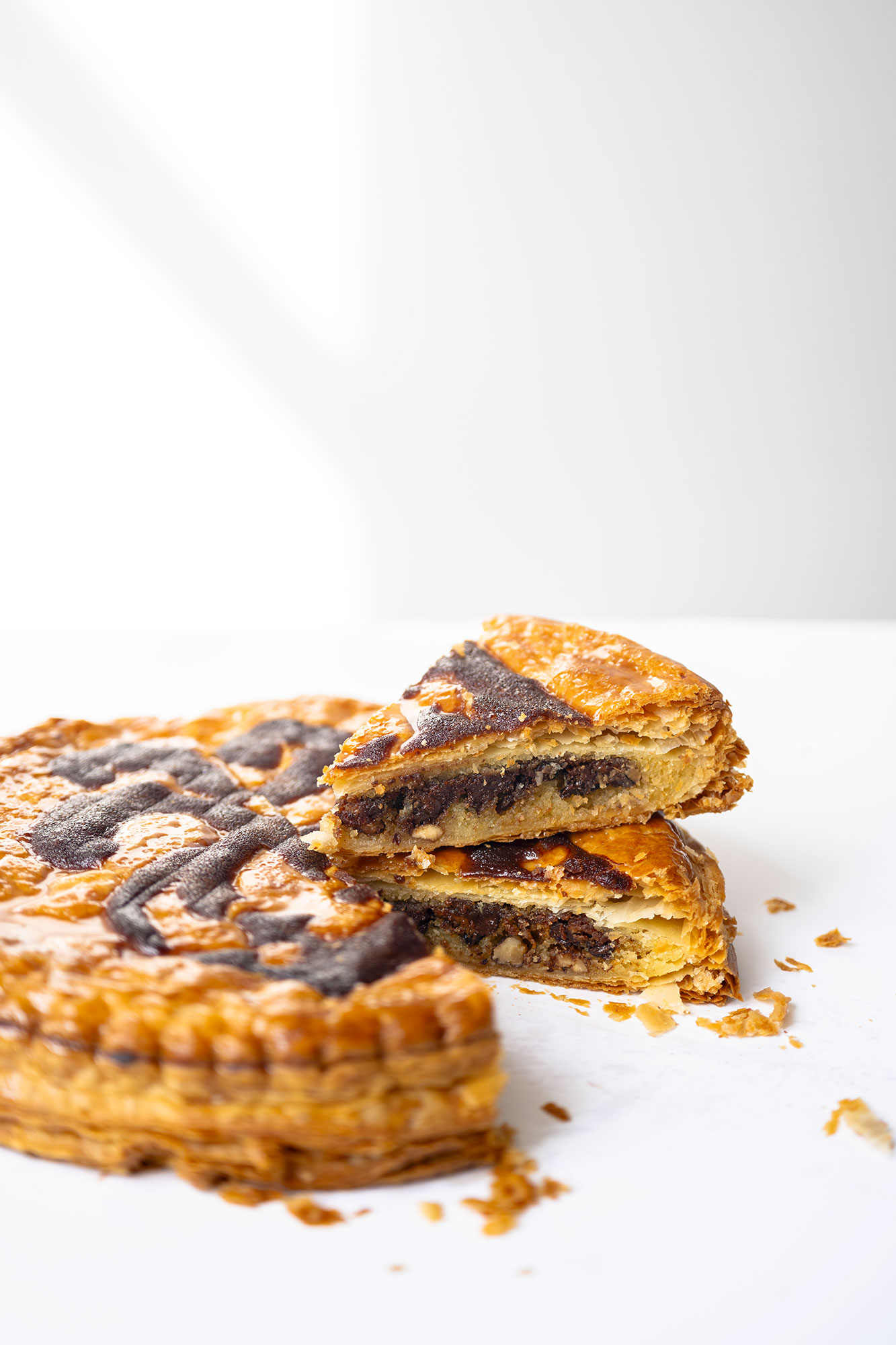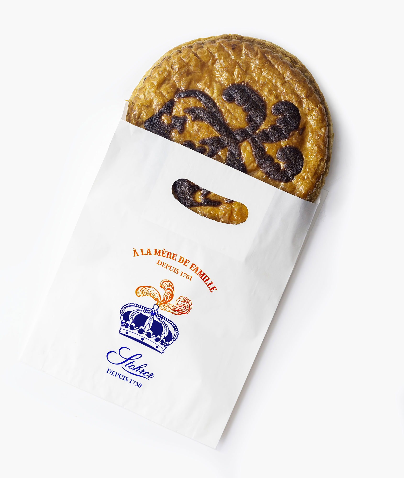 そして、新年を迎え、1月6日のエピファニーをお祝いするのに欠かせないフランス伝統のお菓子ガレット・デ・ロワ。ストレーお得意のバターたっぷりのパイ生地に、アーモンドとヘーゼルナッツのフランジパン+キャラメリゼしたヘーゼルナッツとチョコチップが入った幸せなガレットです。王室御用達だったストレーらしいロゴ入りがまたニクい。1個35ユーロ(4〜6人前)。これまたモントルグイユ通りのストレーと、ア・ラ・メール・ドゥ・ファミーユで販売。