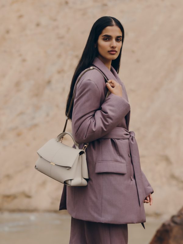 メタリックの留め具をスライドさせて開けると、バッグが大きく開くので使いやすさも抜群。