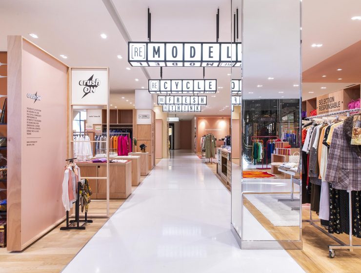 すぐお隣のプランタンと時を同じくして、オスマン通りのギャラリー・ラファイエットの本館3階にも、ビンテージやエコ・レスポンシブルなブランド、ファッションの循環を可能にするさまざまなサービスが見つかる新しいスペース「(RE)…