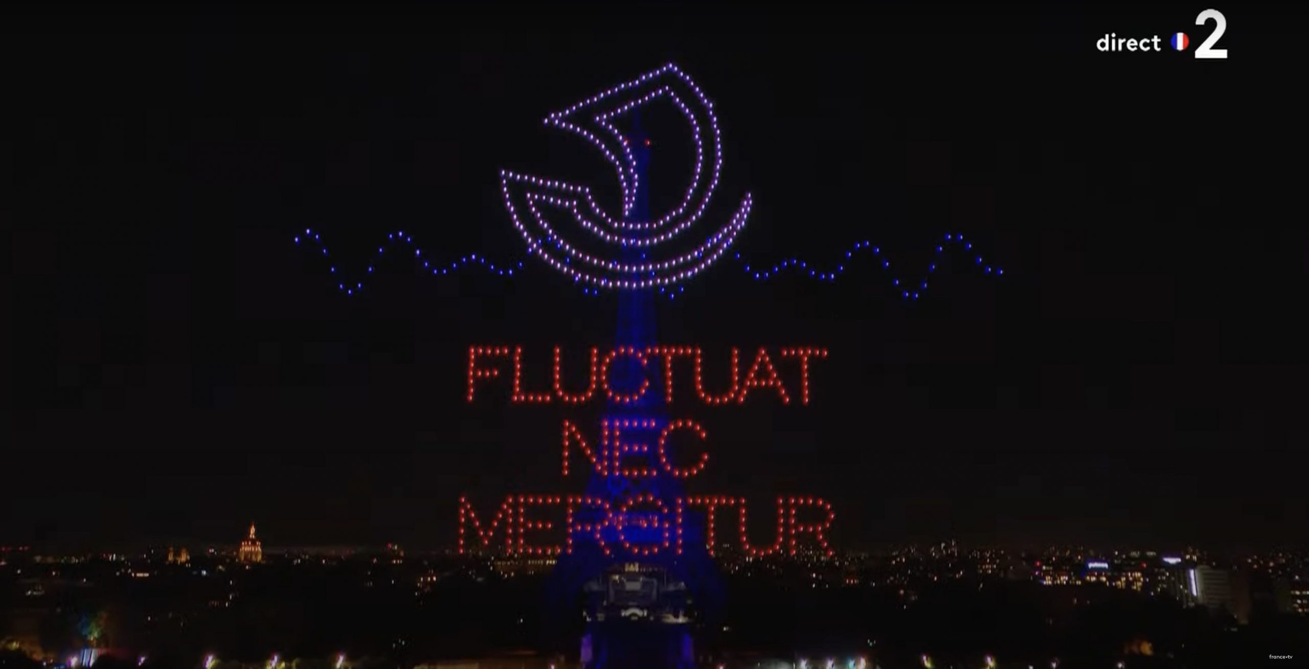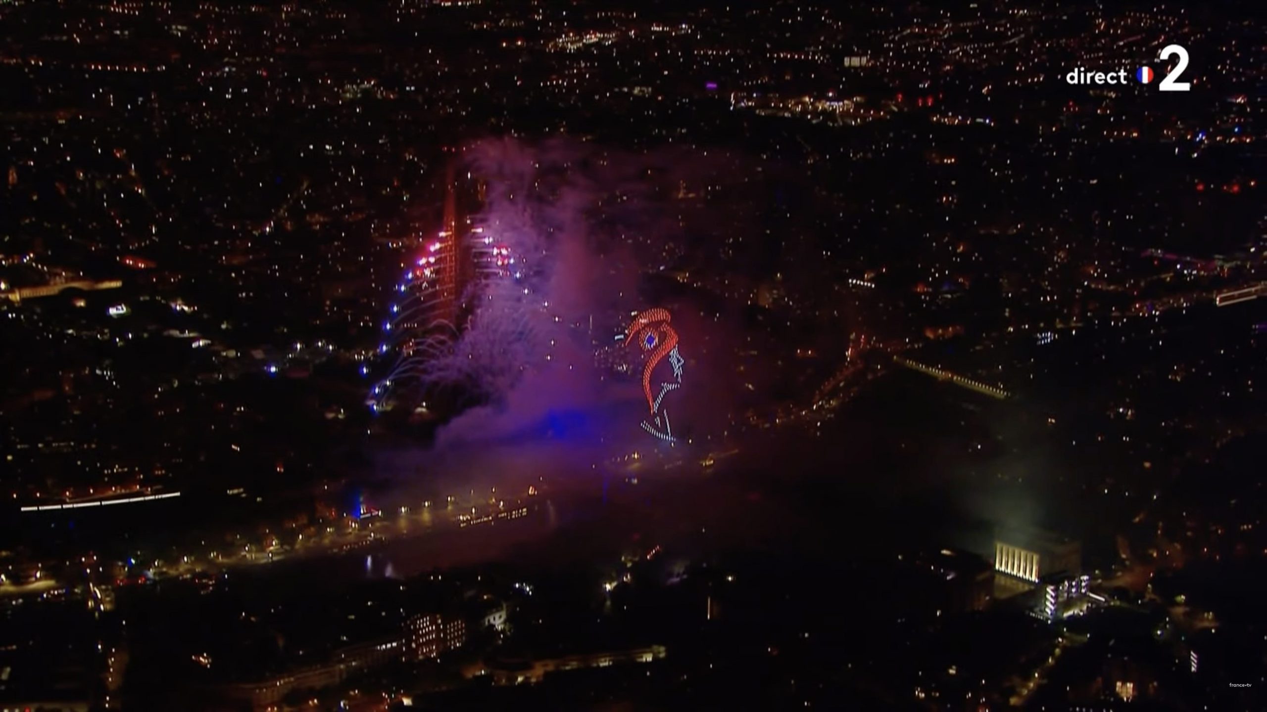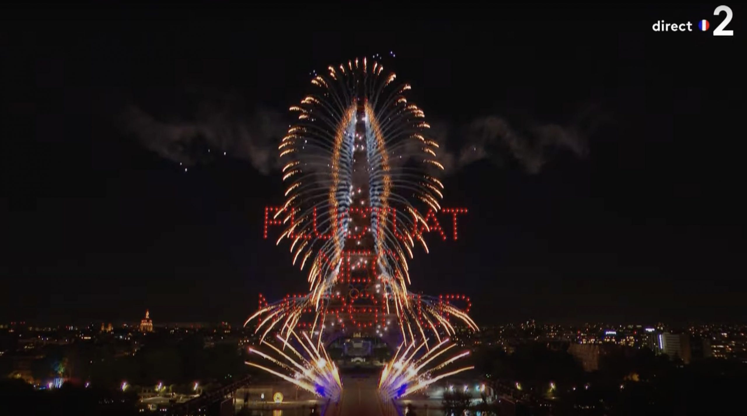 昼過ぎから23時まで行われた聖火リレーのあとは、お楽しみのエッフェル塔での花火!今年はパリ五輪をモチーフにしたドローンの仕掛けが素晴らしかったです。夜空に浮かぶパリ市の市標「FLUCTUAT NEC MERGITUR(たゆたえども沈まず)」の文字が胸に沁みました。