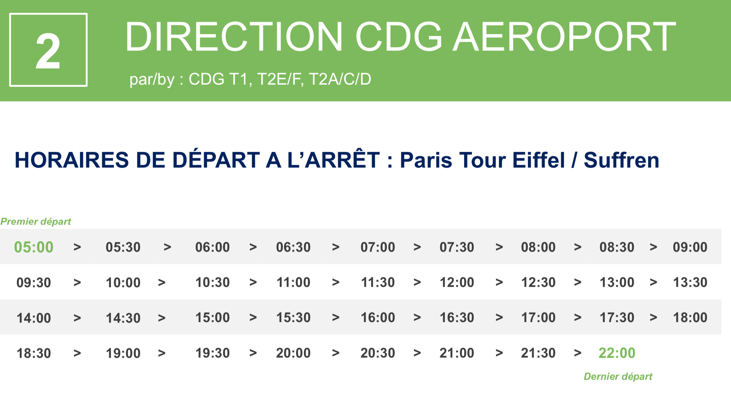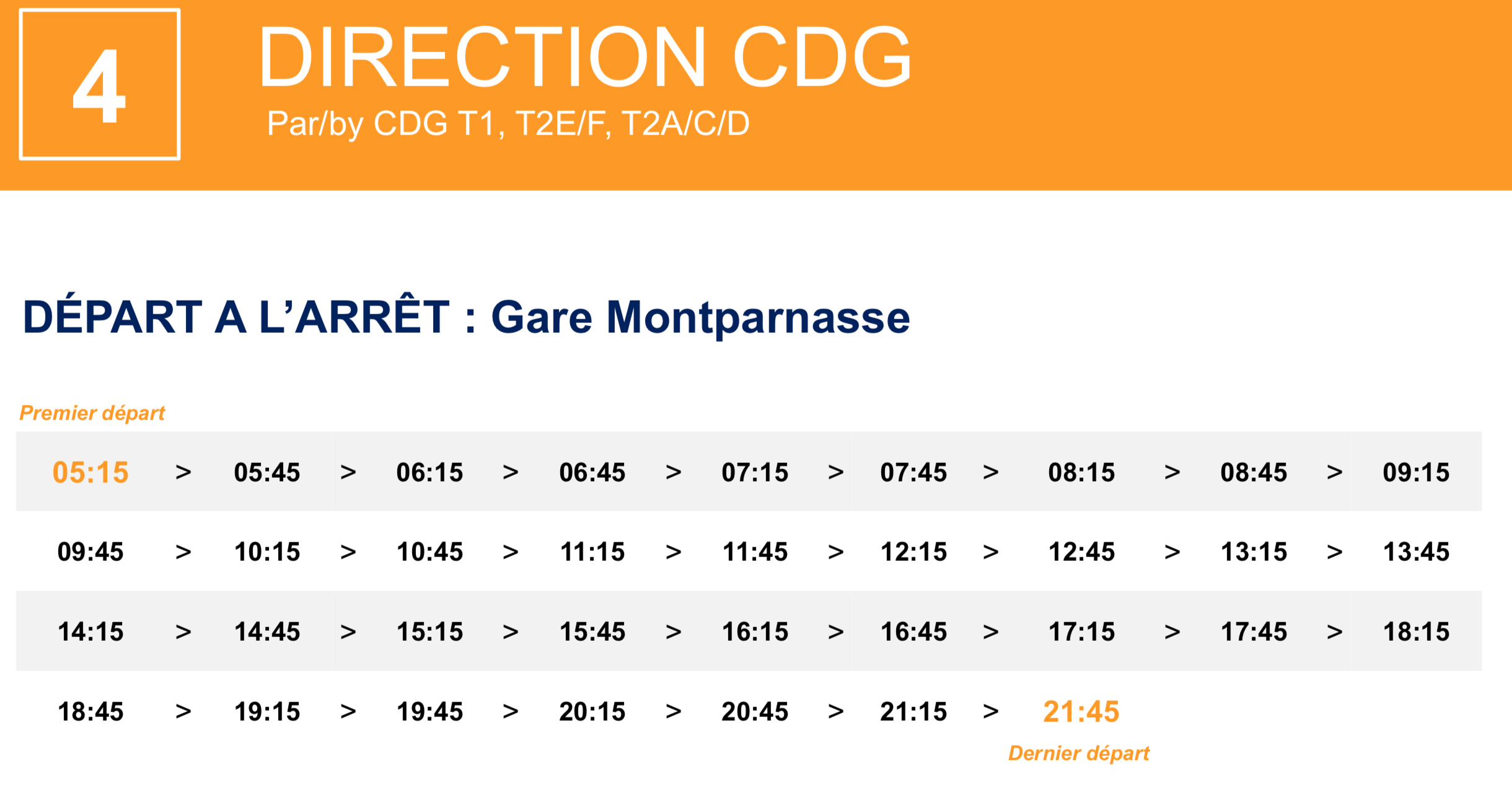 エールフランスのシャトルバス「LE BUS DIRECT」時刻表