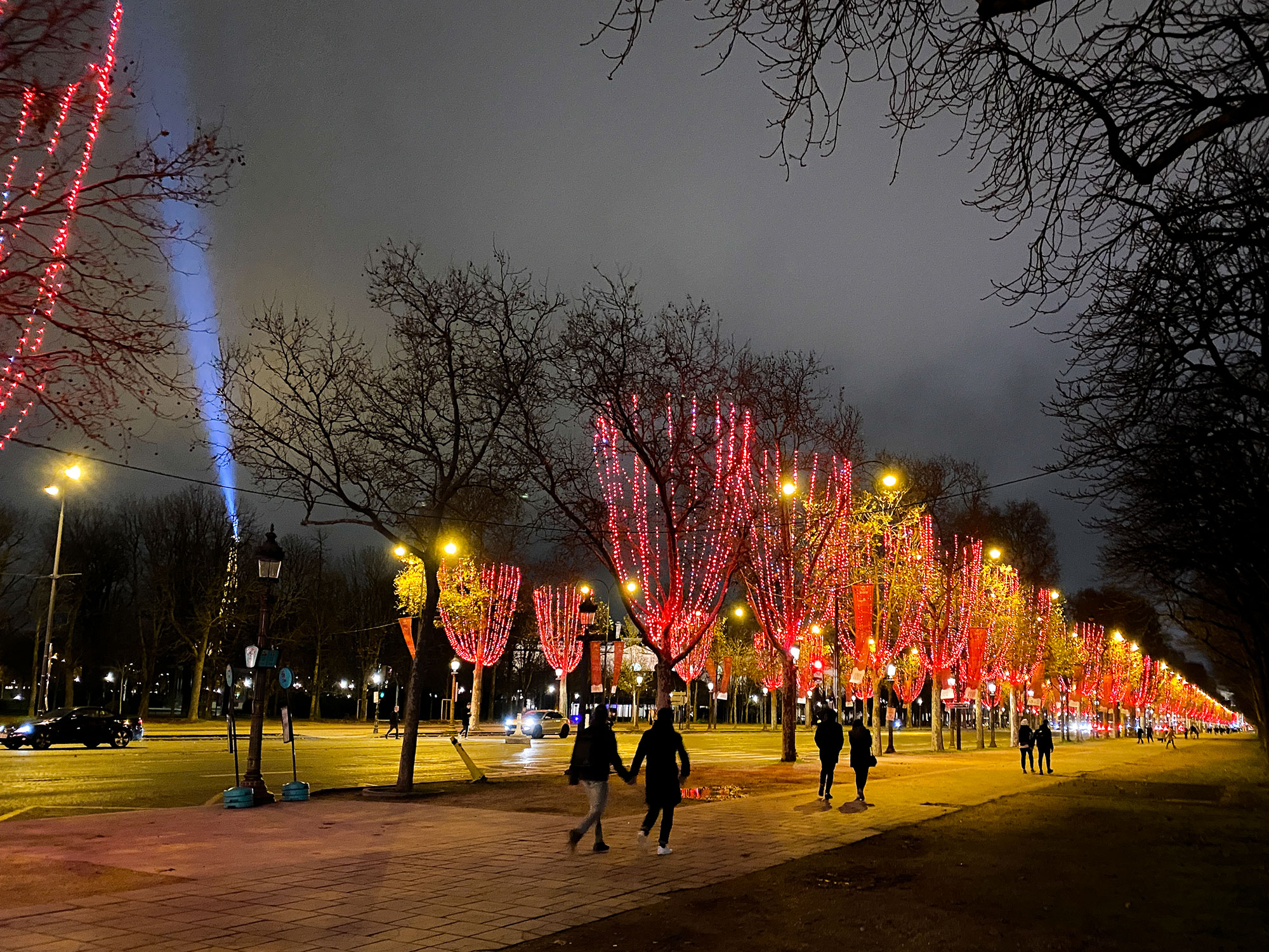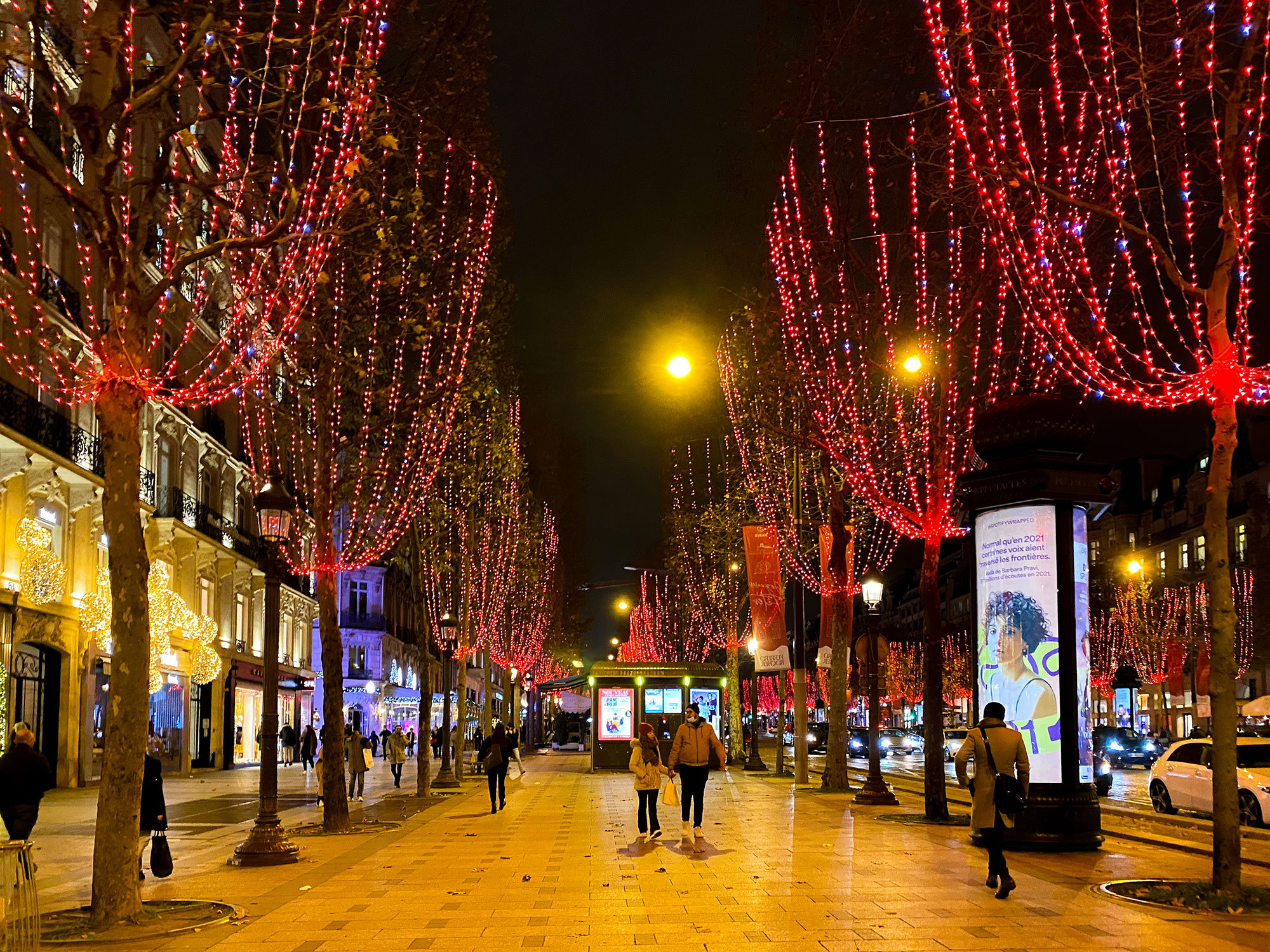2021年シャンゼリゼのイルミネーション シャンゼリゼ大通りのイルミネーションが今年も11月21日に点灯しました!昨年のこの時期はロックダウン、そして夜間の外出が禁止されたこともあり、世界中が注目したバーチャル点灯式となりましたが、今年は無事に歌手のクララ・ルチアーニ出席のもと、点灯式が行われました。 シャンゼリゼのイルミネーションは今年も真っ赤に輝いています!