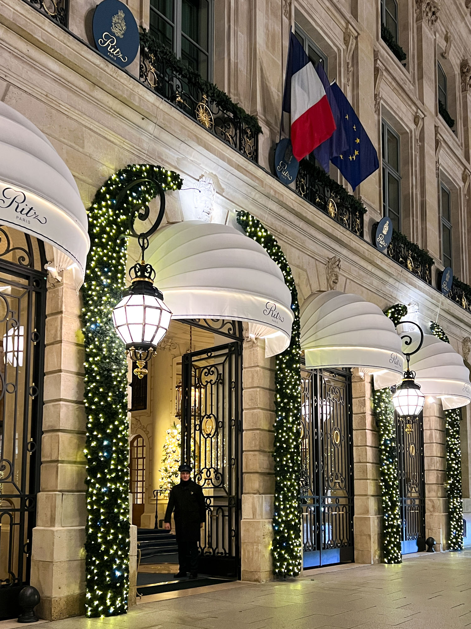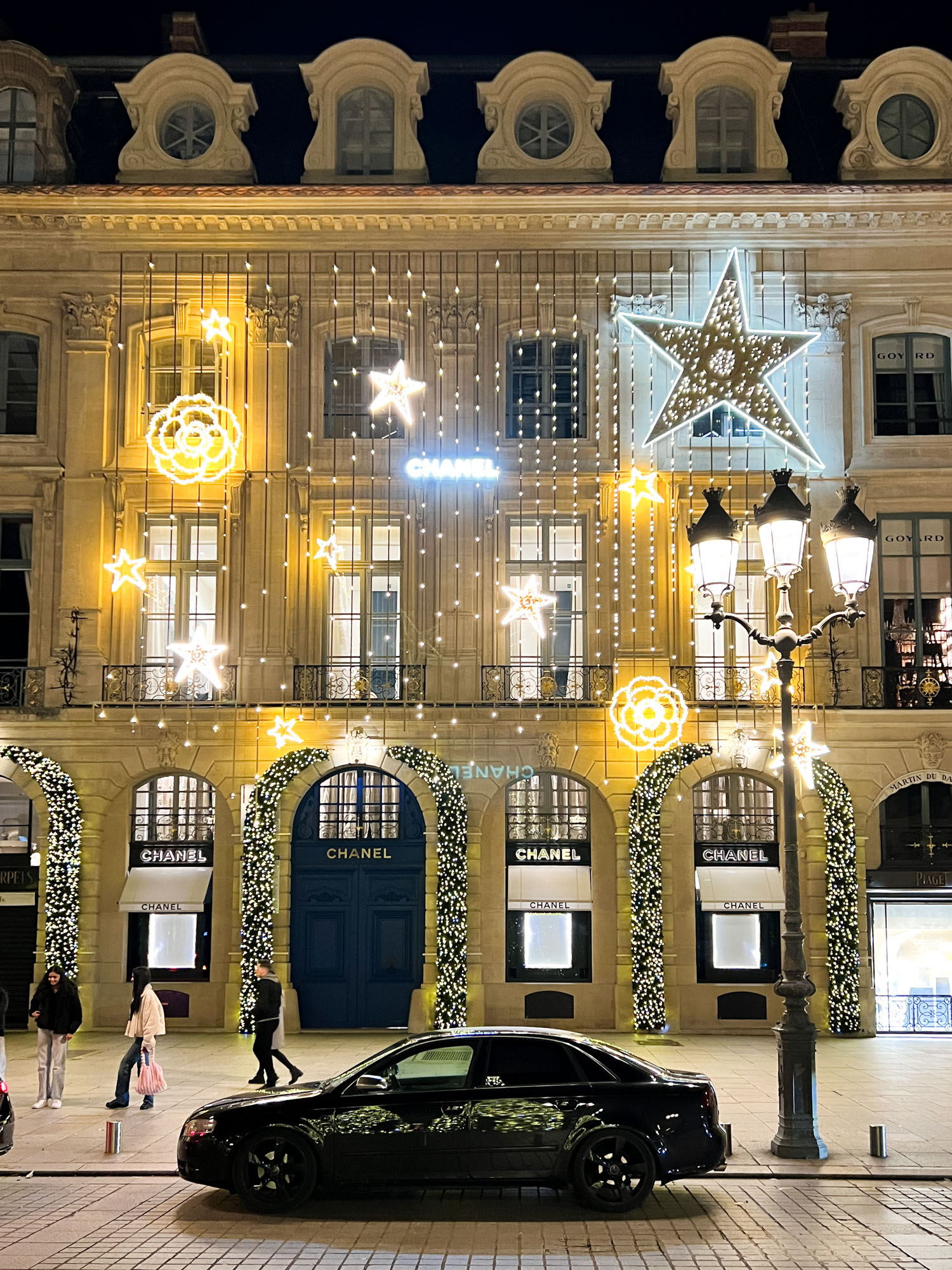 2024年パリ・ヴァンドーム広場のクリスマス・イルミネーション ヴァンドーム広場のクリスマスも本当に美しい。シンプルなフォルムでオトナな雰囲気のシックなツリー、好きです。 シャネルのデコレーションはすっかり恒例になりました。 ルイ・ヴィトンは今年新たに、モノグラムがキラキラするイルミネーションがスタート。 ホテル・リッツもキラキラ…中のツリーも見に行きたい! 2024年パリ・オスマン通りのクリスマス・イルミネーション 2024年パリ・ヴァンドーム広場のクリスマス・イルミネーション 2024年パリ・サントノレ通りのクリスマス・イルミネーション 2024年パリ・モンテーニュ通りのクリスマス・イルミネーション 2024年シャンゼリゼのクリスマス・イルミネーション
