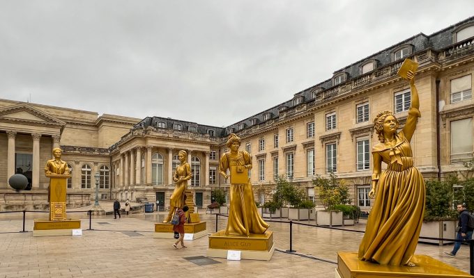 テーマカラーはずばり、金メダルのゴールド。パッと目を引く唇は、フランス共和国の自由を象徴する女性像「マリアンヌ」をイメージしたもので、さらにマリアンヌの顔を縁取る髪の毛は聖火の炎を想起させます。PARIS 2024のフォントもとても可愛いですね。(→マリアンヌについてはこちらの記事をどうぞ)