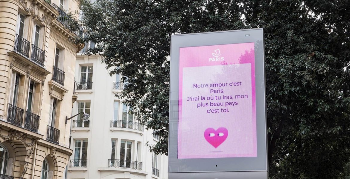 この日、パリ市にある157の電光掲示板に事前に募集した愛のメッセージを表示するイベントも、すっかり毎年恒例になりました。今年のメッセージもパリ市のサイトに掲載されていますので、いくつかご紹介したいと思います。愛を伝える表現のバリエーション、発想の豊かさはさすがフランス人!ですよ〜