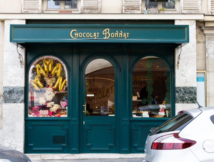 1761年、パリ9区のフォーブール・モンマルトル通りに創業した「ア・ラ・メール・ドゥ・ファミーユ」はパリで一番古いコンフィズリー&ショコラトリー。緑色のファサードに金色の店名が刻まれた黒看板、床のタイルや木製の棚、チョコ…