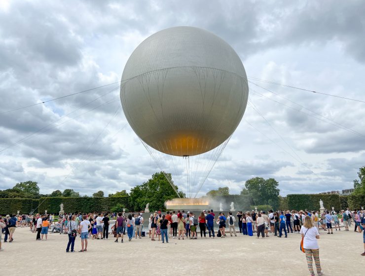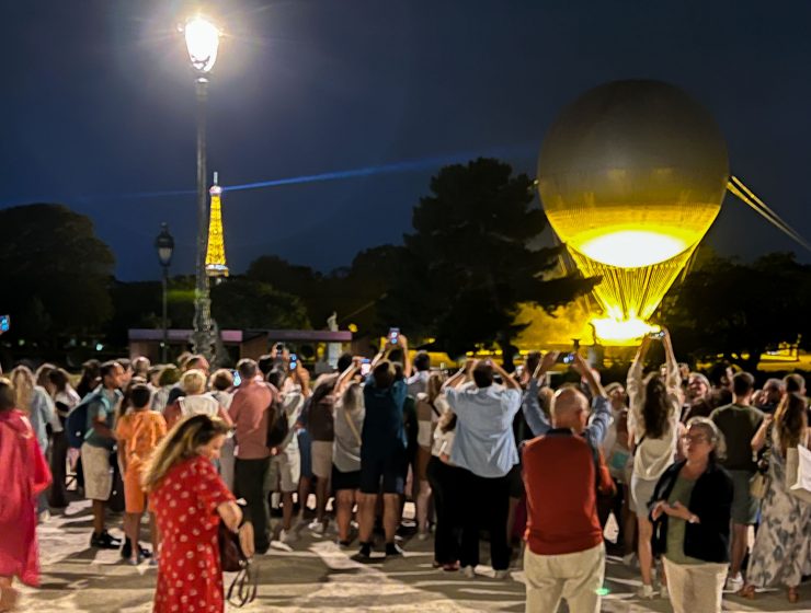 パリ・オリンピック雑記 2024年8月2日(金) チュイルリー公園に設置された、聖火台をのせた気球は、昼間は地上に留まっていますが、夜になると空に浮かび上がります。その姿をひと目見ようと、夜9時ごろ、まずはルーヴル美術館…