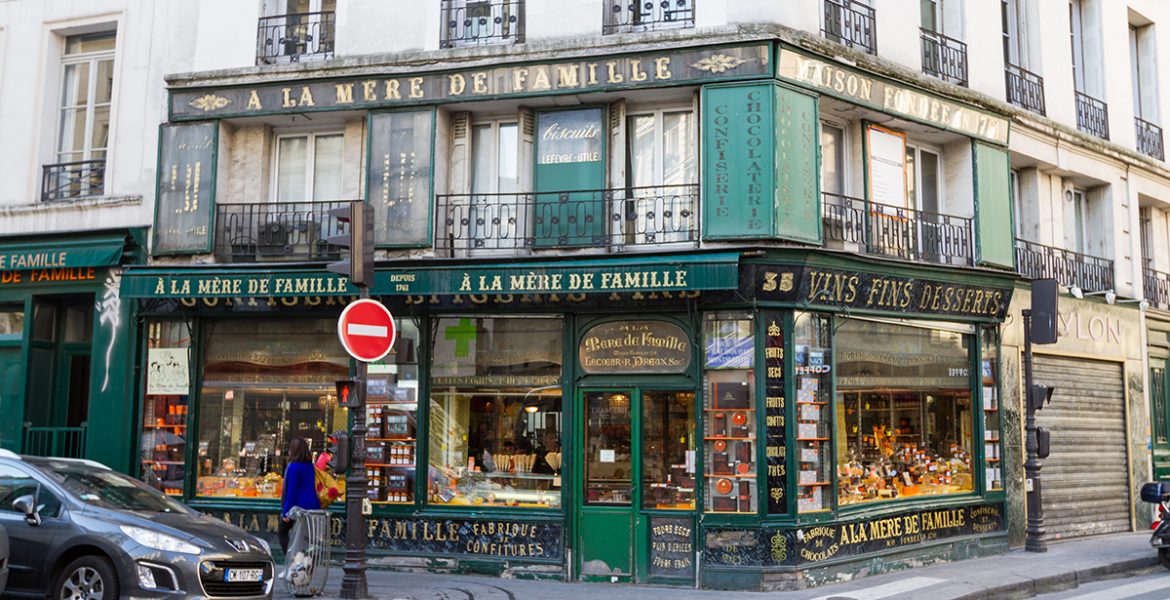1761年、パリ9区のフォーブール・モンマルトル通りに創業した「ア・ラ・メール・ドゥ・ファミーユ」はパリで一番古いコンフィズリー&ショコラトリー。緑色のファサードに金色の店名が刻まれた黒看板、床のタイルや木製の棚、チョコレートが並ぶショーケースなど、250年以上もの間変わらないその店構えは一見の価値があります。