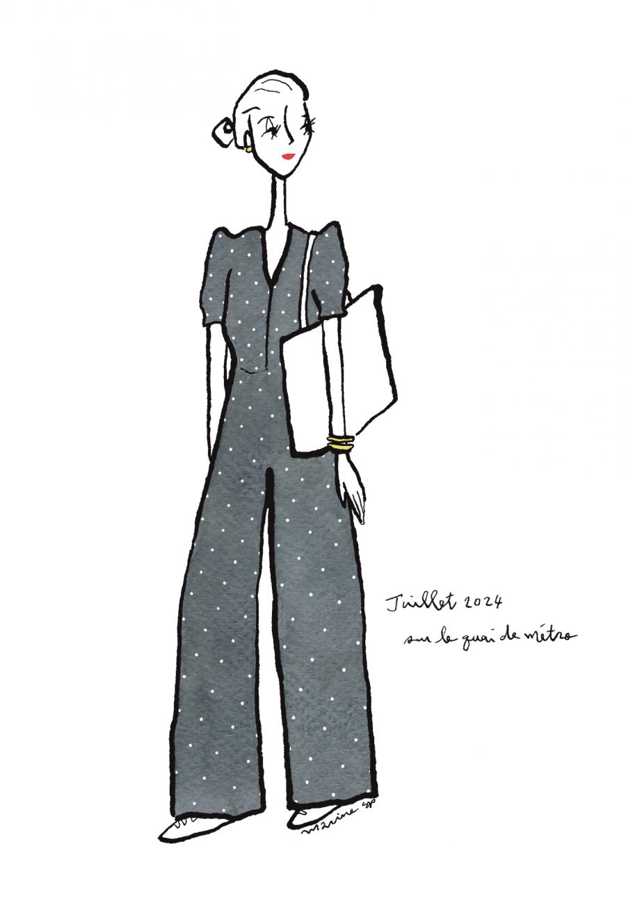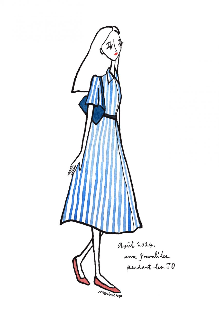 〈12ヶ月のパリジェンヌ〉août 2024 パリ在住の日本人イラストレーターMarine(マリン)さんが毎月トリコロル・パリに届けてくれる、街角のおしゃれなパリジェンヌを描いた素敵なイラスト。パリに暮らす女の子たちがどんなコーディネートをしているのか、今のパリの空…