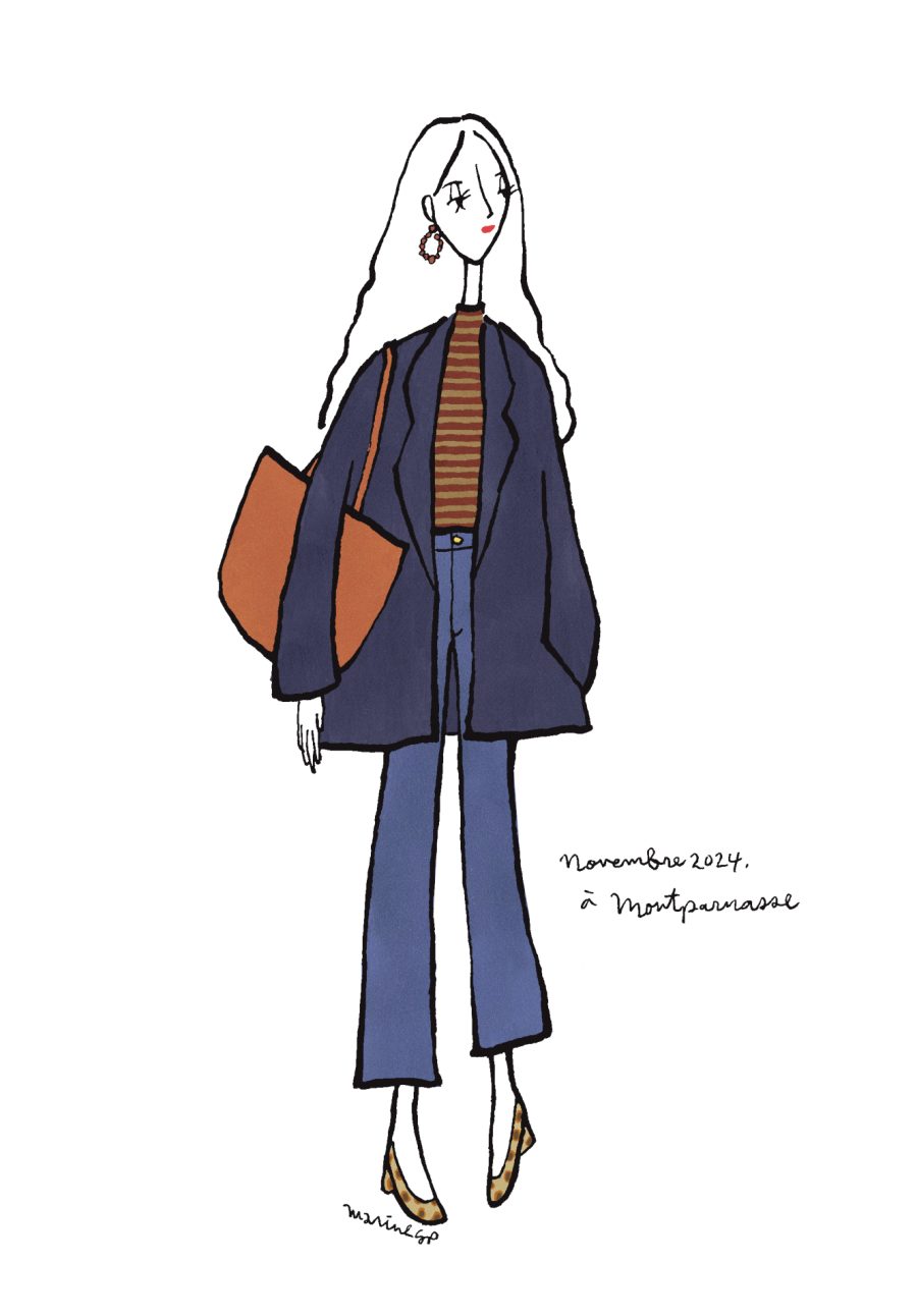 〈12ヶ月のパリジェンヌ〉novembre 2024 パリ在住の日本人イラストレーターMarine(マリン)さんが毎月トリコロル・パリに届けてくれる、街角のおしゃれなパリジェンヌを描いた素敵なイラスト。パリに暮らす女の子たちがどんなコーディネートをしているのか、今のパリの空…