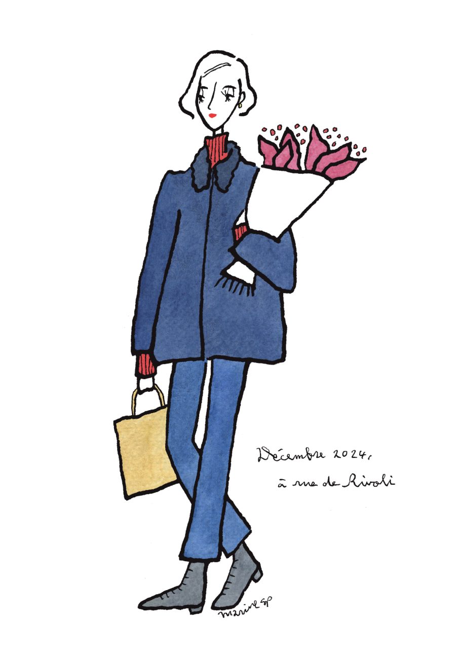 〈12ヶ月のパリジェンヌ〉décembre 2024 パリ在住の日本人イラストレーターMarine(マリン)さんが毎月トリコロル・パリに届けてくれる、街角のおしゃれなパリジェンヌを描いた素敵なイラスト。パリに暮らす女の子たちがどんなコーディネートをしているのか、今のパリの空…