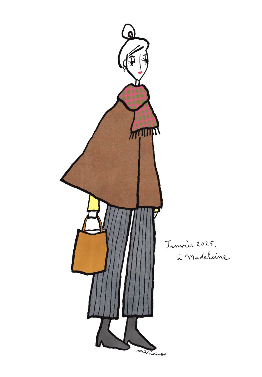 〈12ヶ月のパリジェンヌ〉janvier 2025 パリ在住の日本人イラストレーターMarine(マリン)さんが毎月トリコロル・パリに届けてくれる、街角のおしゃれなパリジェンヌを描いた素敵なイラスト。パリに暮らす女の子たちがどんなコーディネートをしているのか、今のパリの空…