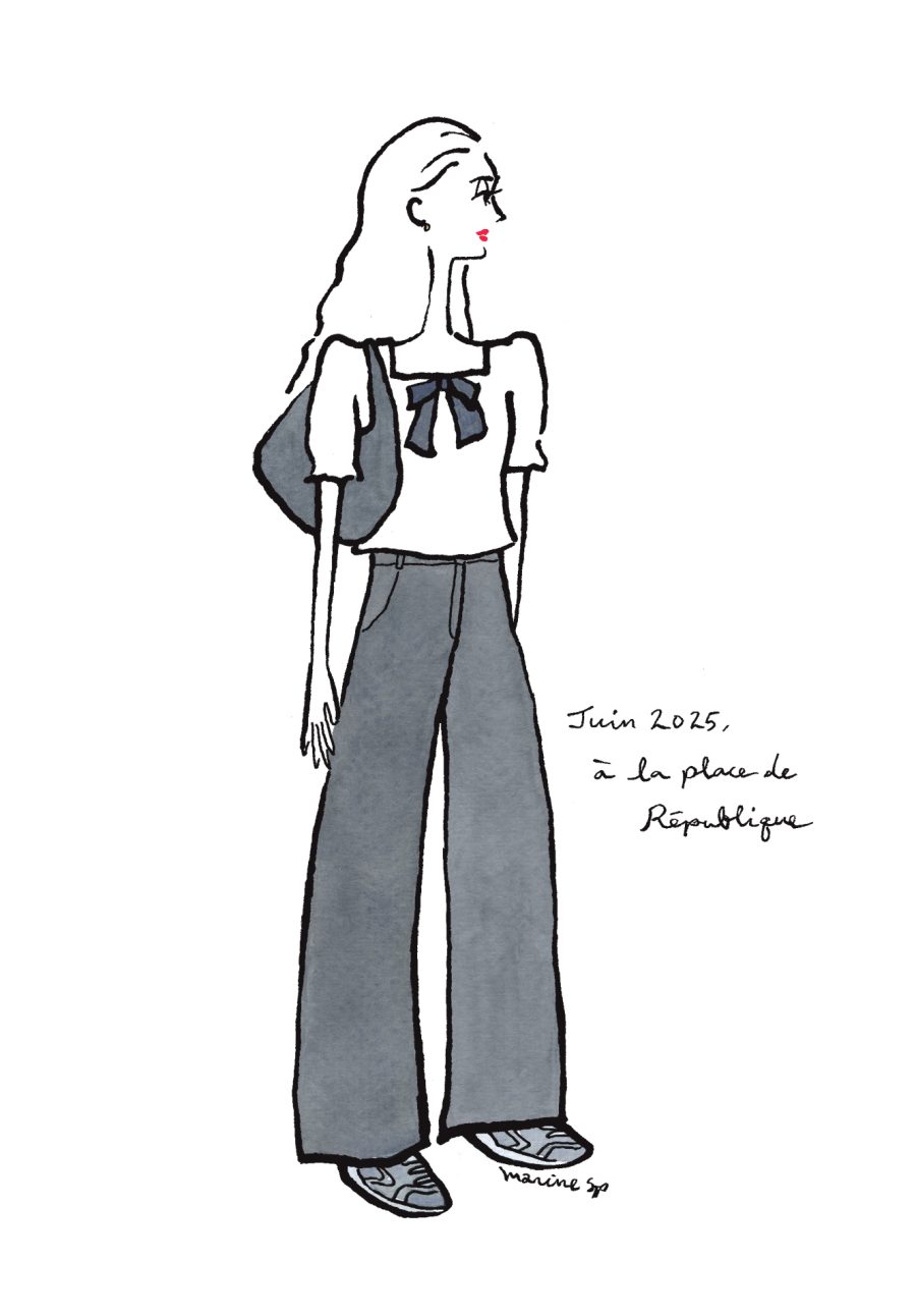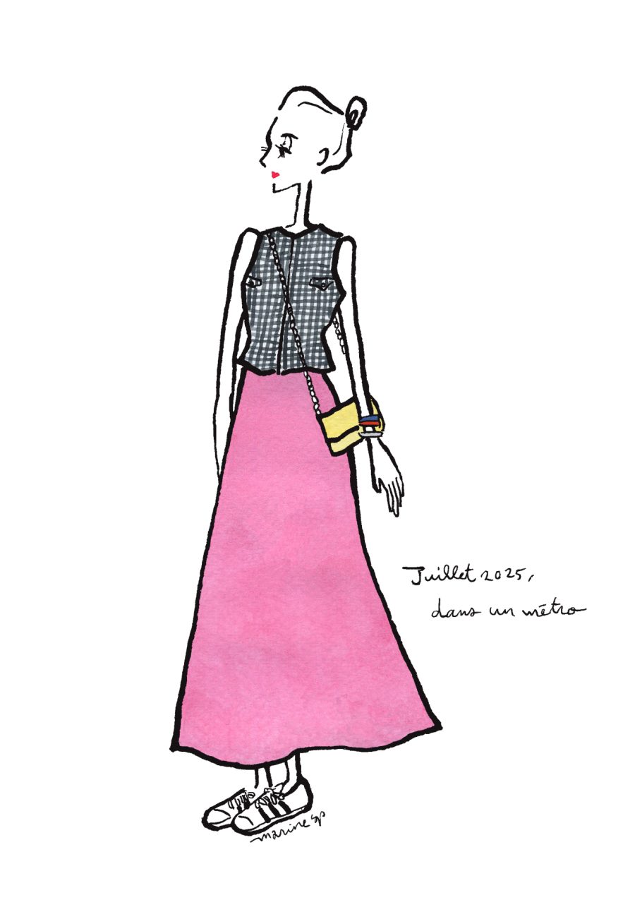 〈12ヶ月のパリジェンヌ〉août 2025 パリ在住の日本人イラストレーターMarine(マリン)さんが毎月トリコロル・パリに届けてくれる、街角のおしゃれなパリジェンヌを描いた素敵なイラスト。パリに暮らす女の子たちがどんなコーディネートをしているのか、今のパリの空…