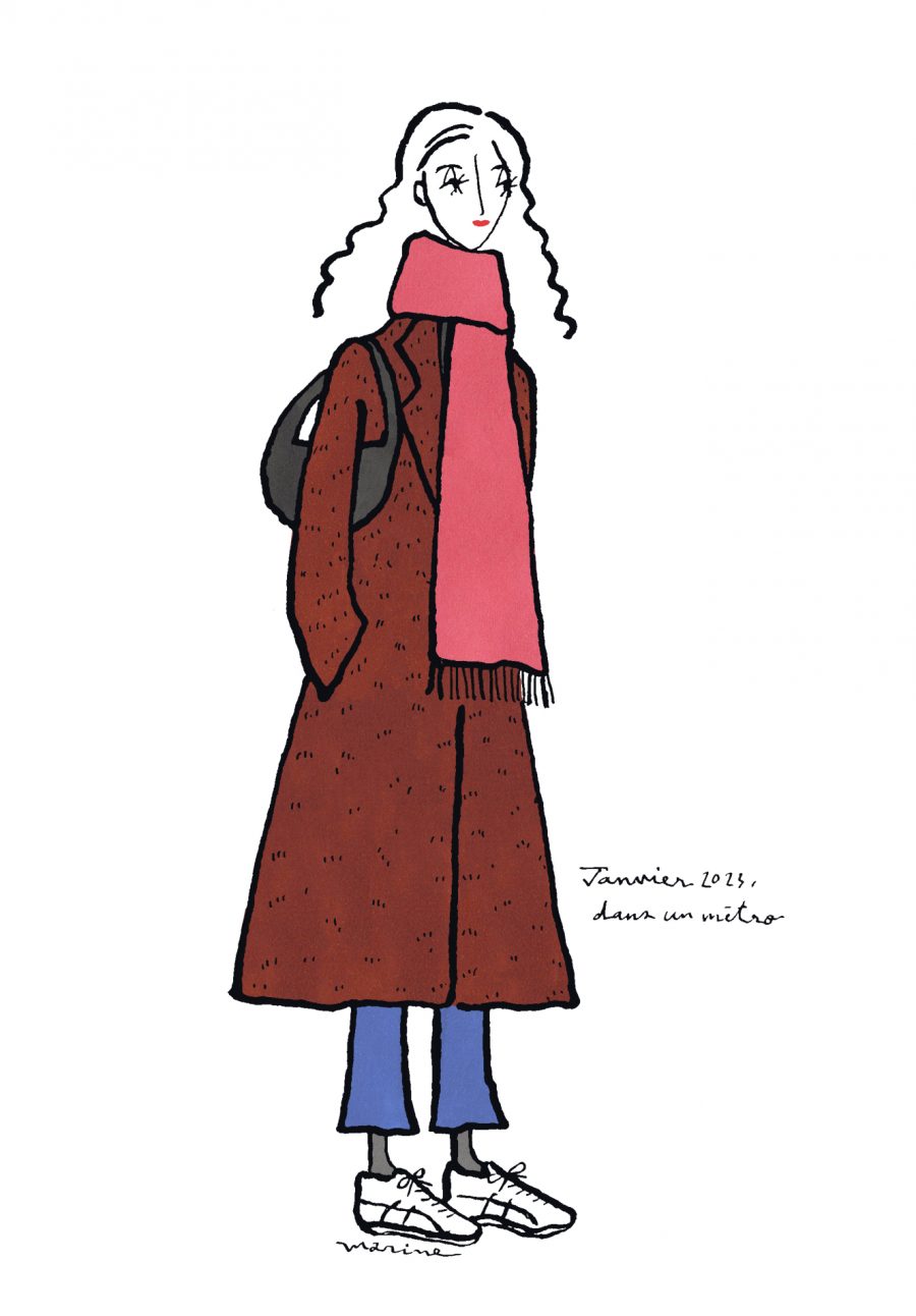 〈12ヶ月のパリジェンヌ〉janvier 2023 パリ在住の日本人イラストレーターMarine(マリン)さんが毎月トリコロル・パリに届けてくれる、街角のおしゃれなパリジェンヌを描いた素敵なイラスト。パリに暮らす女の子たちがどんなコーディネートをしているのか、今のパリの空…