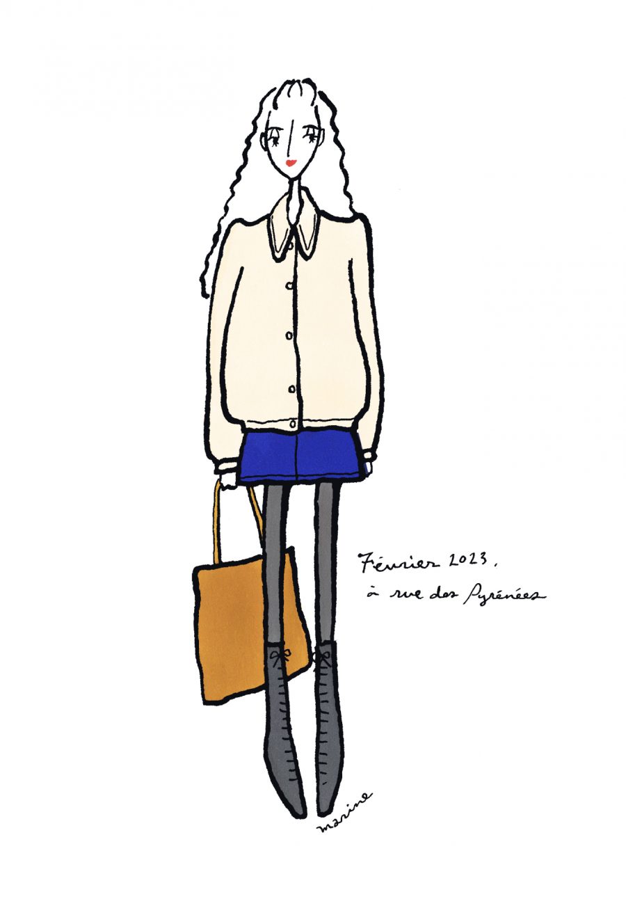 〈12ヶ月のパリジェンヌ〉mars 2023 パリ在住の日本人イラストレーターMarine(マリン)さんが毎月トリコロル・パリに届けてくれる、街角のおしゃれなパリジェンヌを描いた素敵なイラスト。パリに暮らす女の子たちがどんなコーディネートをしているのか、今のパリの空…