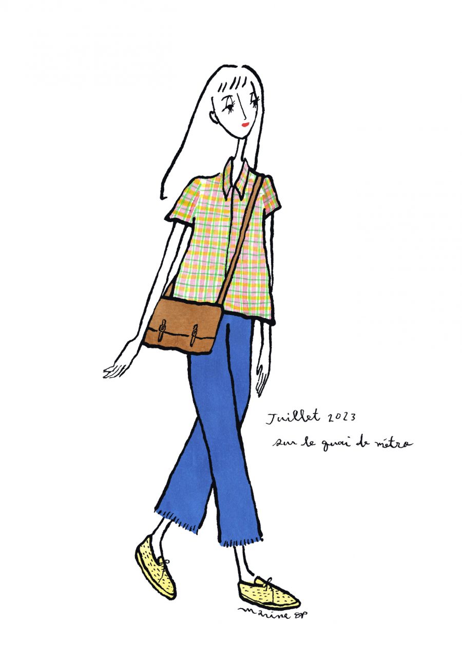 〈12ヶ月のパリジェンヌ〉août 2023 パリ在住の日本人イラストレーターMarine(マリン)さんが毎月トリコロル・パリに届けてくれる、街角のおしゃれなパリジェンヌを描いた素敵なイラスト。パリに暮らす女の子たちがどんなコーディネートをしているのか、今のパリの空…