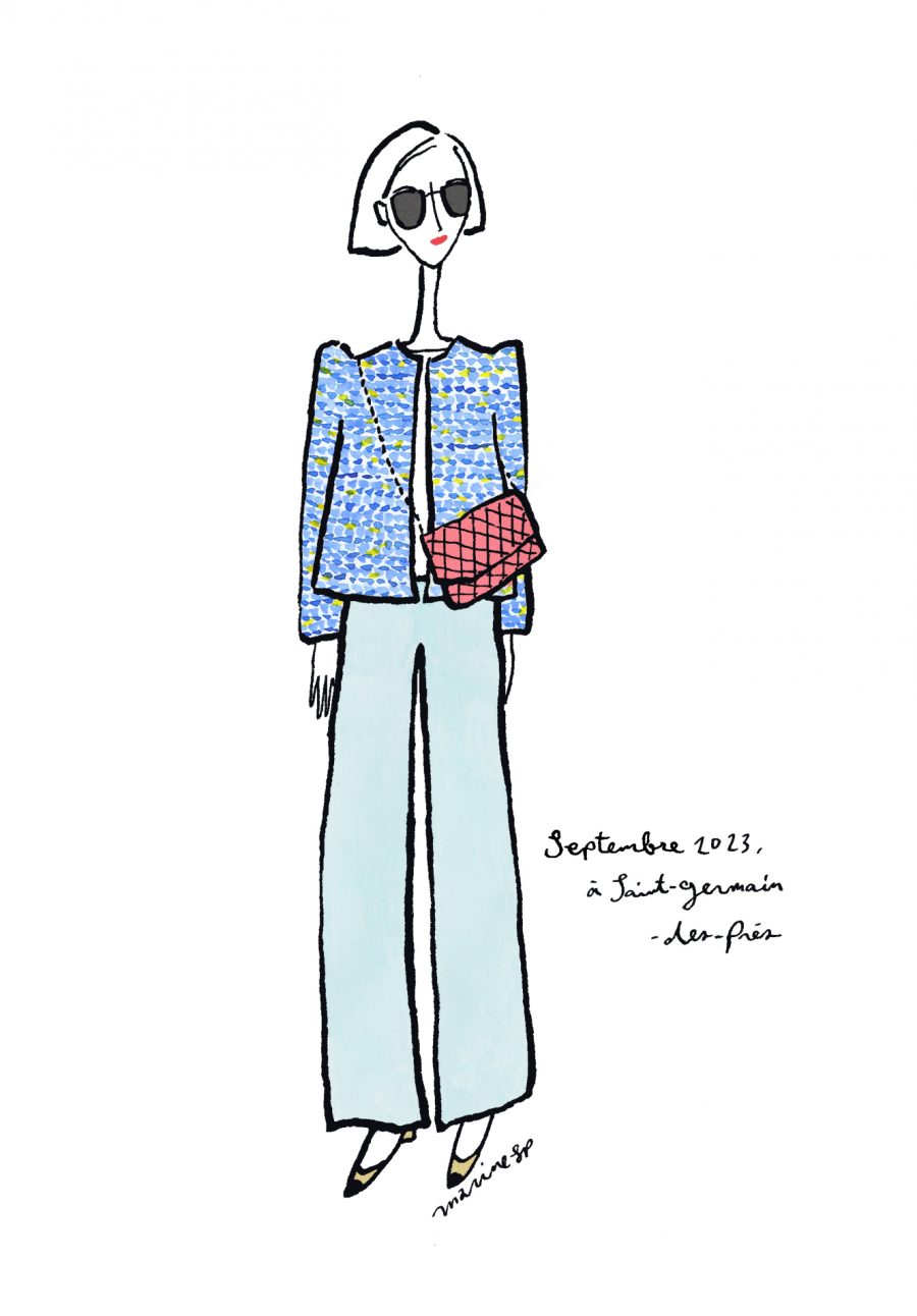 〈12ヶ月のパリジェンヌ〉septembre 2023 パリ在住の日本人イラストレーターMarine(マリン)さんが毎月トリコロル・パリに届けてくれる、街角のおしゃれなパリジェンヌを描いた素敵なイラスト。パリに暮らす女の子たちがどんなコーディネートをしているのか、今のパリの空…