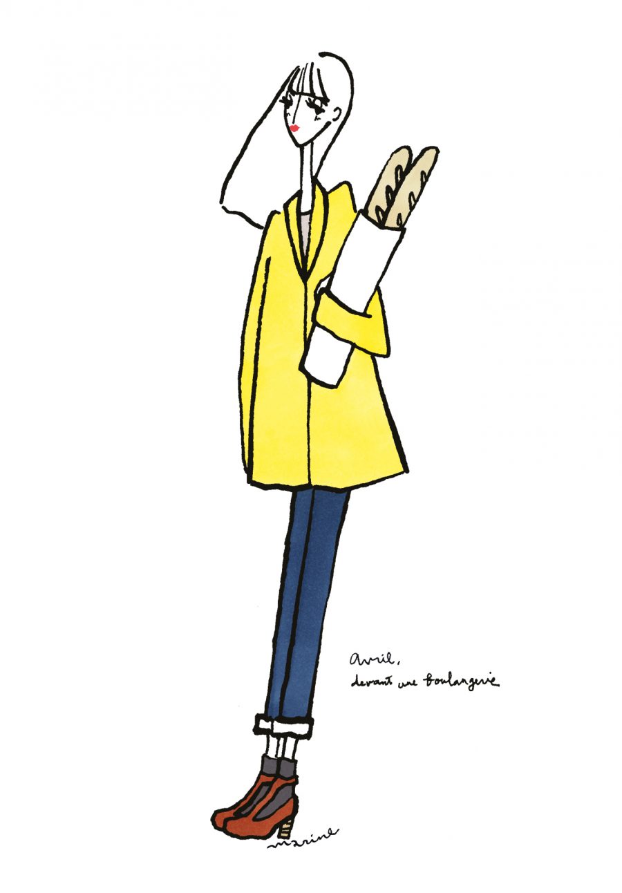 パリ在住の日本人イラストレーターMarine(マリン)さんが毎月トリコロル・パリに届けてくれる、街角のおしゃれなパリジェンヌを描いた素敵なイラスト。パリに暮らす女の子たちがどんなコーディネートをしているのか、今のパリの空…
