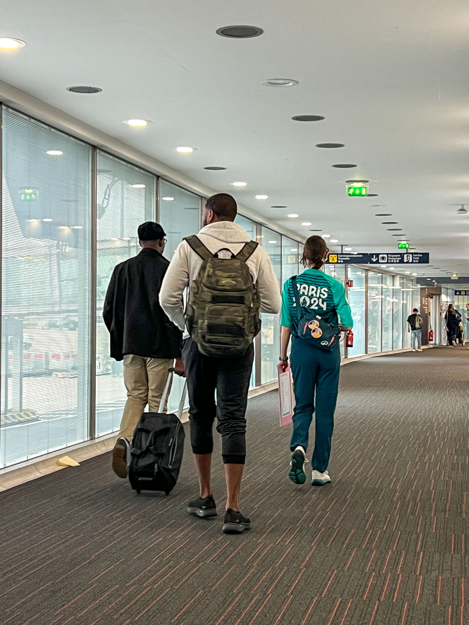 パリ2024オリンピックの開会式を前日に控えた25日の夜、一時帰国の日本からパリに戻りました。到着したのはシャルル・ド・ゴール空港のターミナル2C。飛行機から搭乗橋を通って空港の建物に入ってすぐの廊下を進んでいたら、係員の人から「入国審査が混雑しているので一旦止まってください」と言われ、廊下に行列ができました。混雑で入国審査場で並ぶのはよくありますが、その手前の廊下で並んだのは初めてかも…開会式前日ということで、やはり普段より混んでいたのかもしれません。