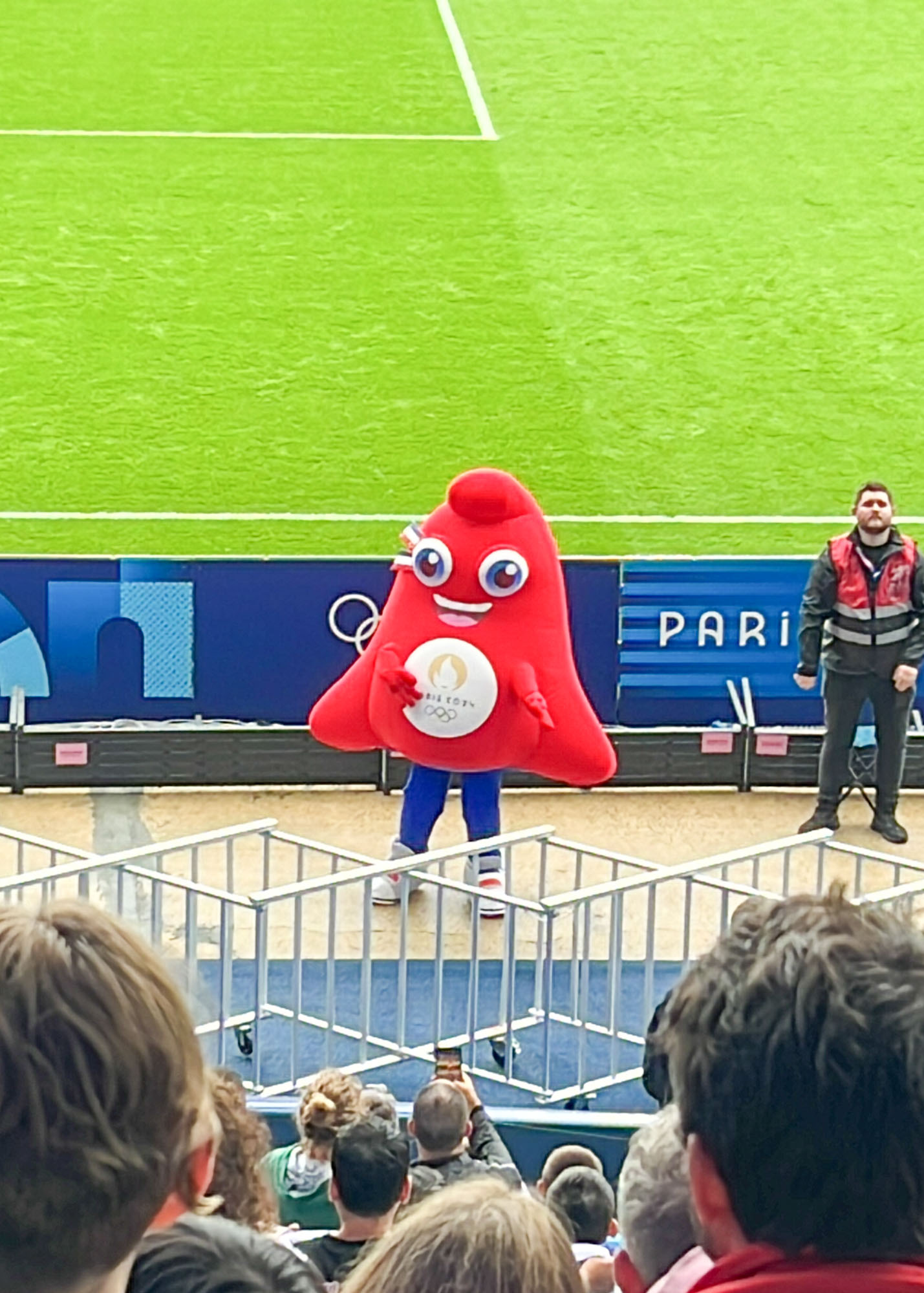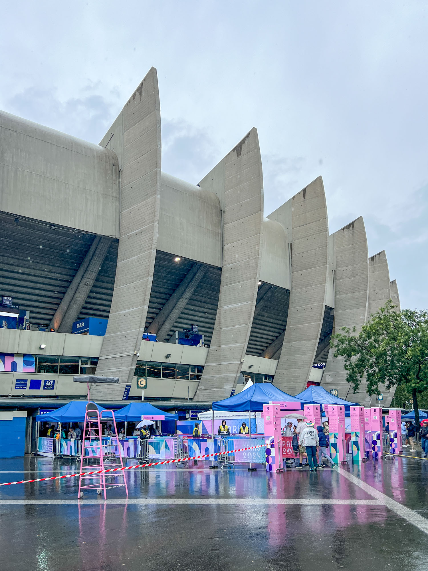 しとしと雨がやまないなか、パルク・デ・プランスに来ました!パリの西、ブローニュの森の南にあり、普段はPSGの本拠地のスタジアムです。このチケットは組合せ抽選の前、どの国の試合になるかわからないまま買いましたが、日本と同グループのパラグアイ🇵🇾イスラエル🇮🇱の対戦となりました。生まれて初めての五輪競技観戦、楽しみます!