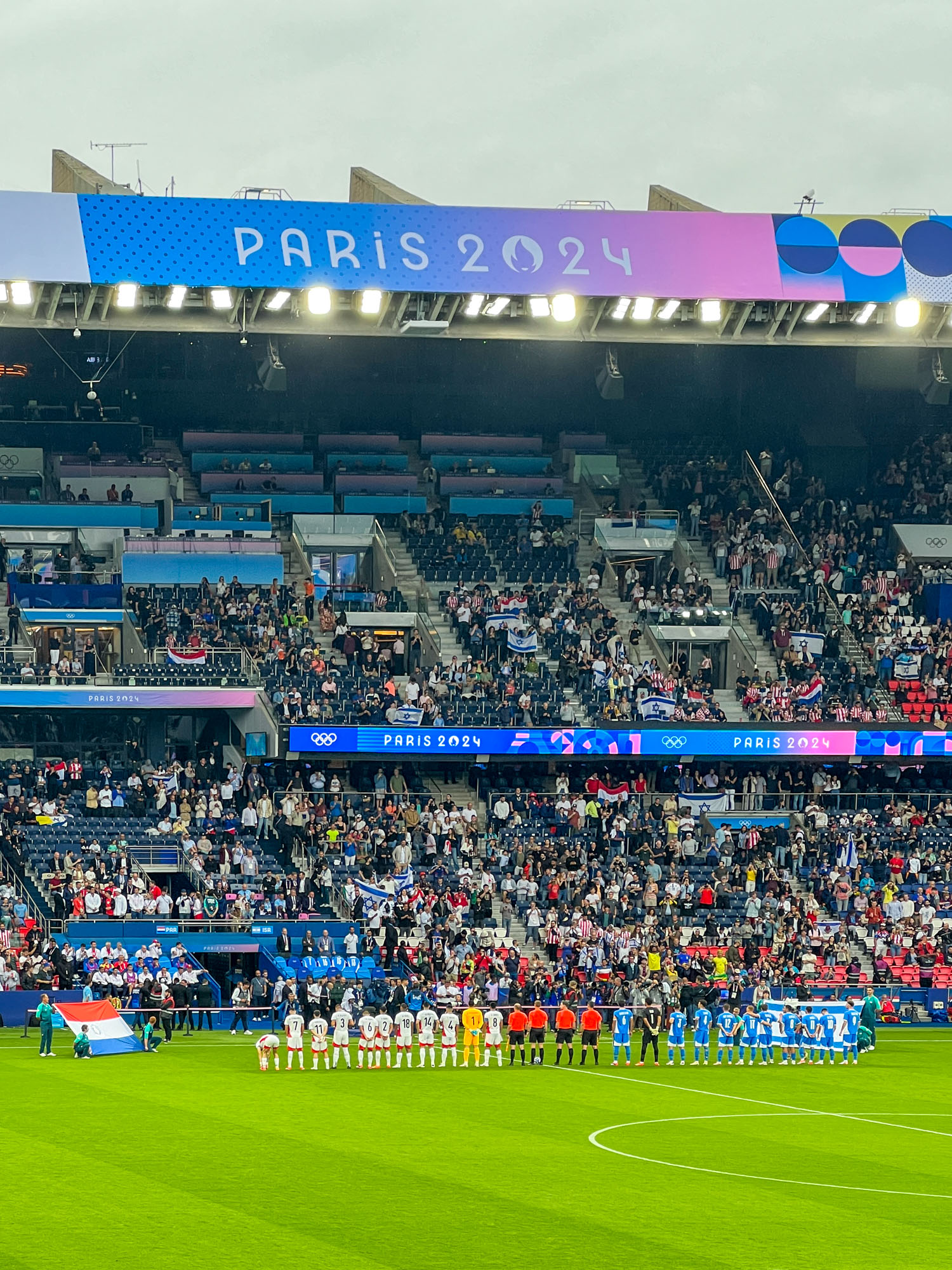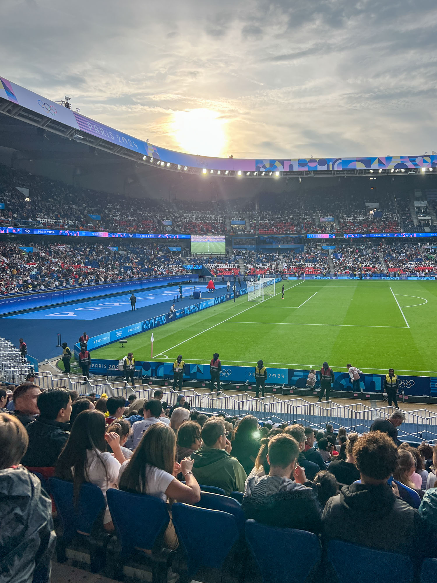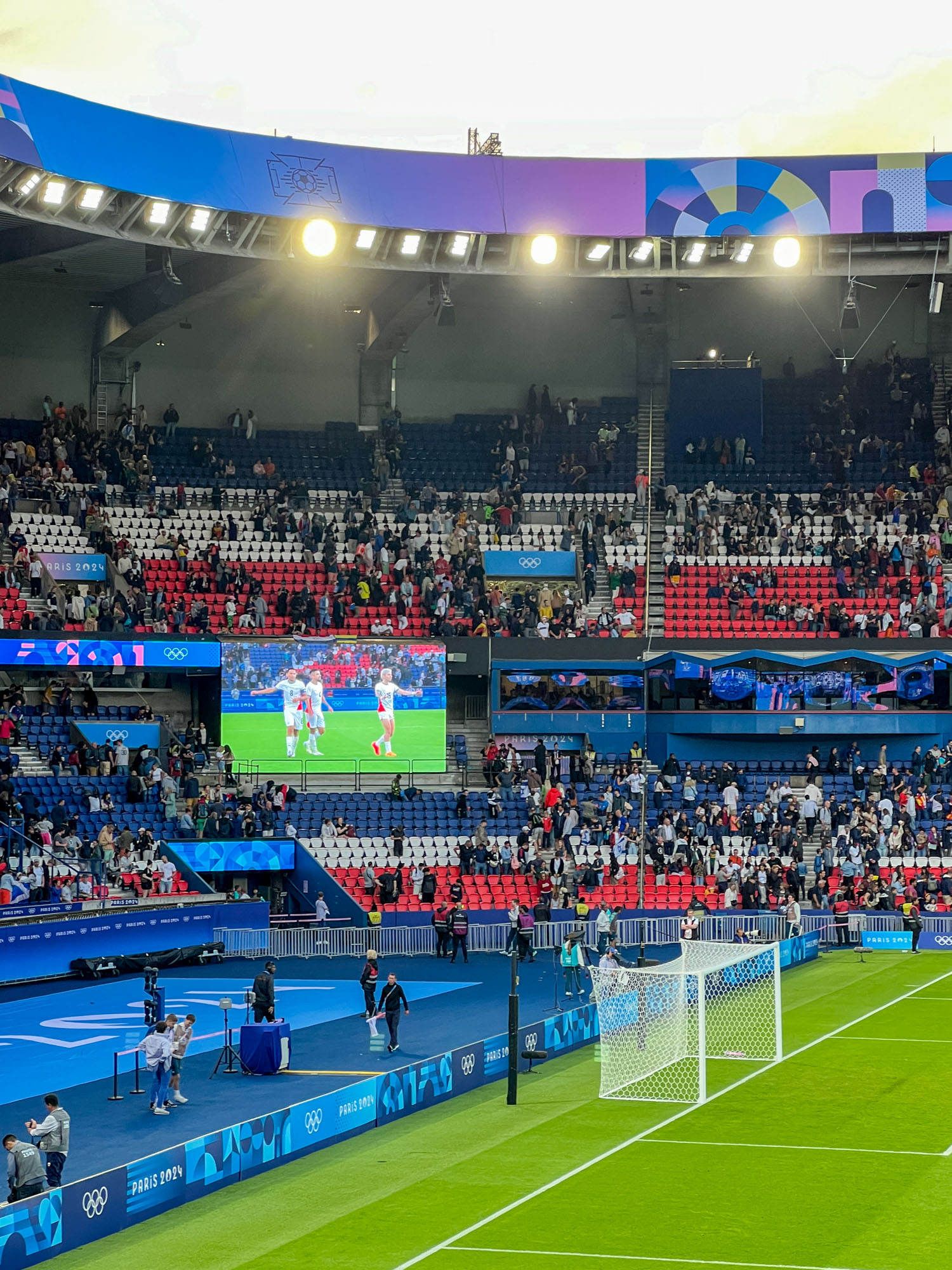 パラグアイ🇵🇾イスラエル🇮🇱、4-2でパラグアイの勝利!試合終了後には青空が広がりました。両国のサポーターもいましたが、組合せ抽選前にチケットを買った人が多かったのか観客はかなり多国籍。スタジアムが純粋にサッカーの試合を楽しもうという雰囲気だったのは嬉しい驚きでした!オリンピックならではなのかも。