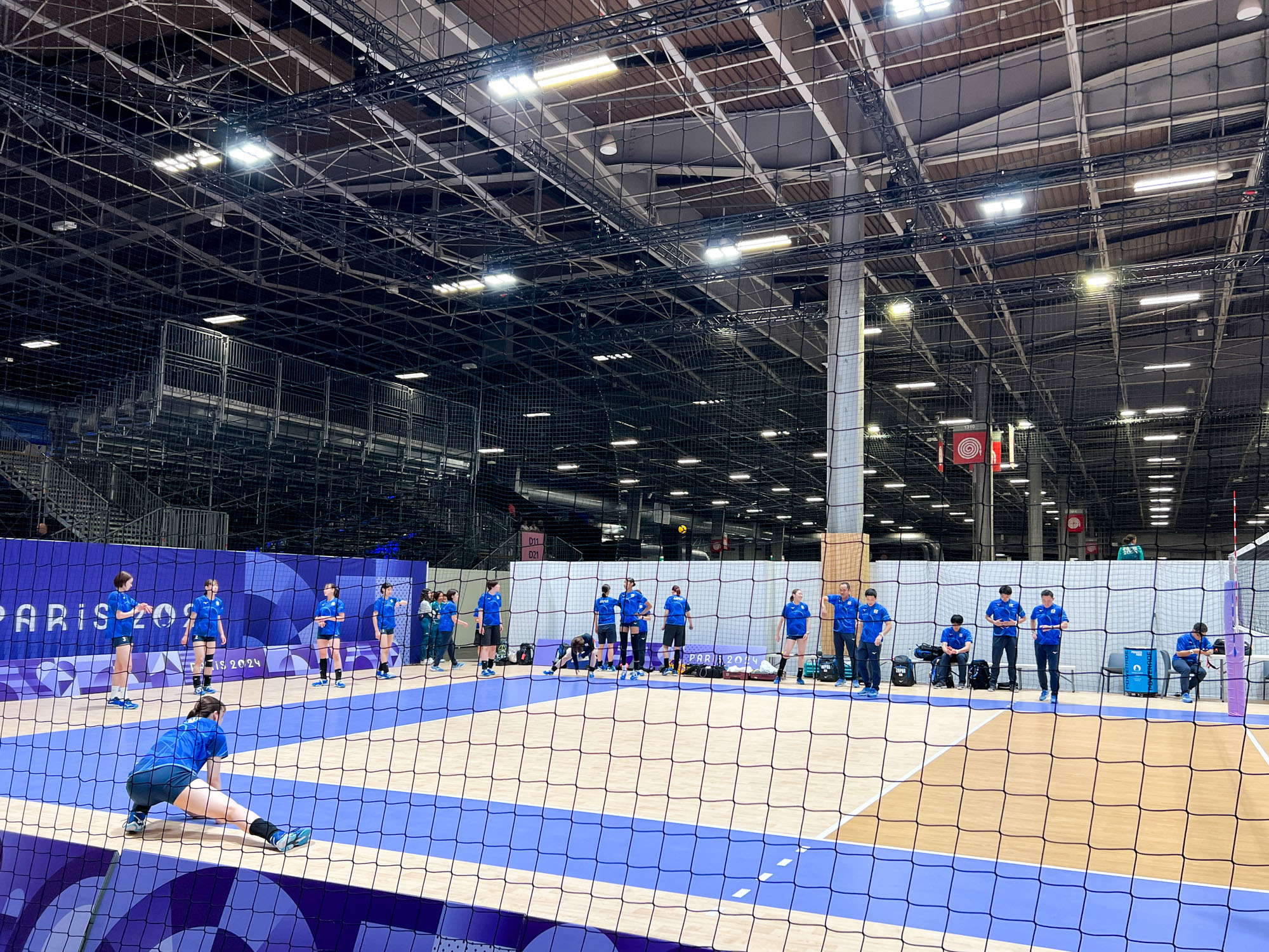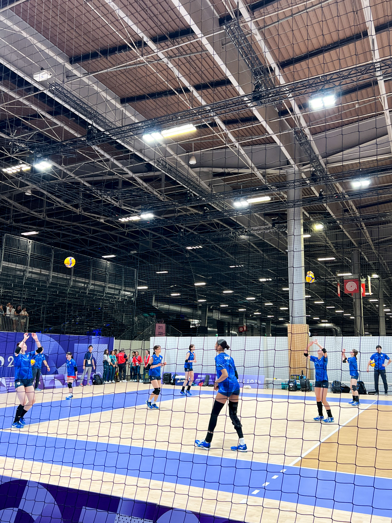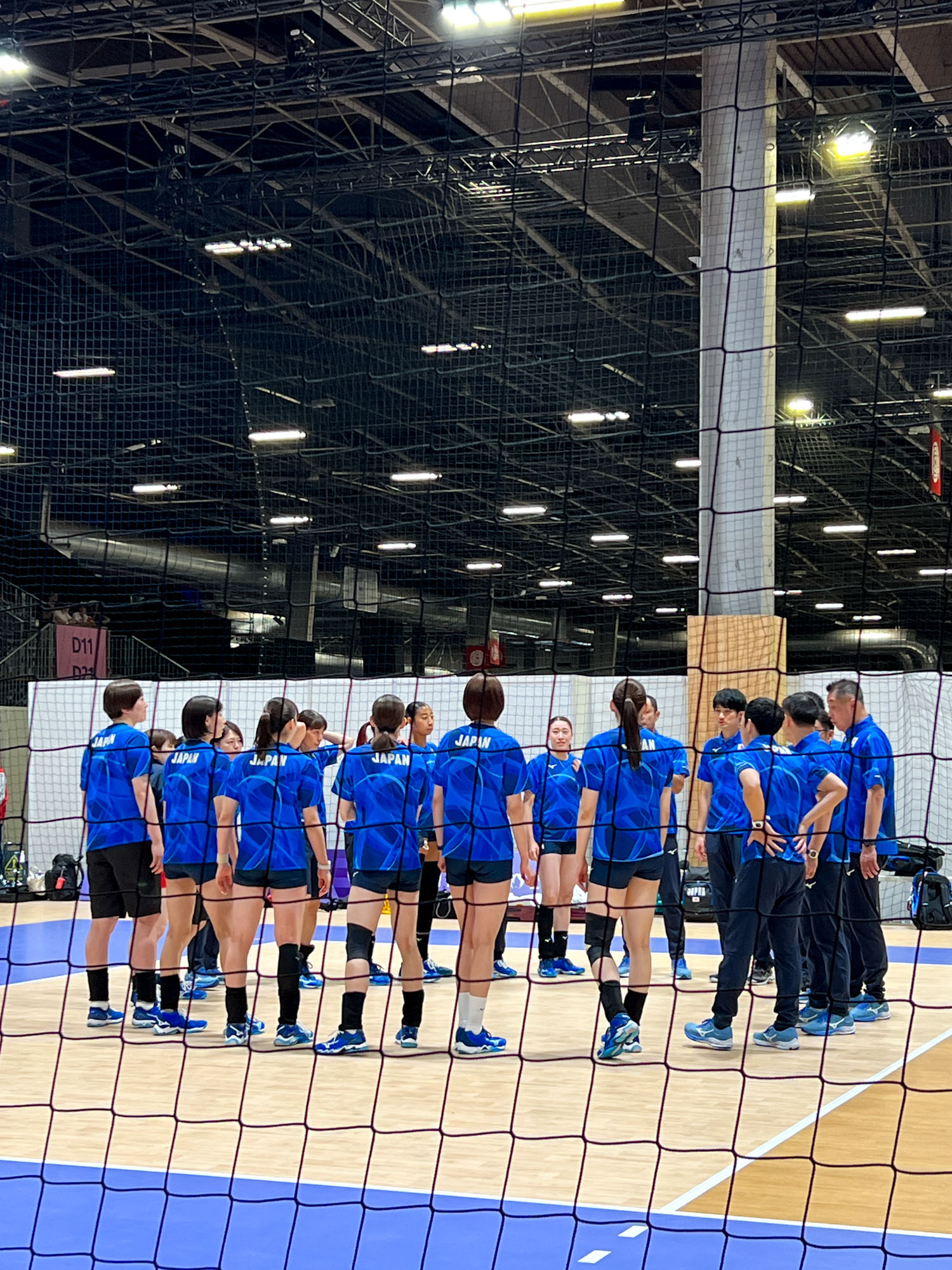 そして奥にはウォームアップエリアが公開されています。ちょうど日本代表チームがアップ中でラッキー!キャプテンの古賀紗理那選手、石川真佑選手などなど、選手の姿を間近で観られました!