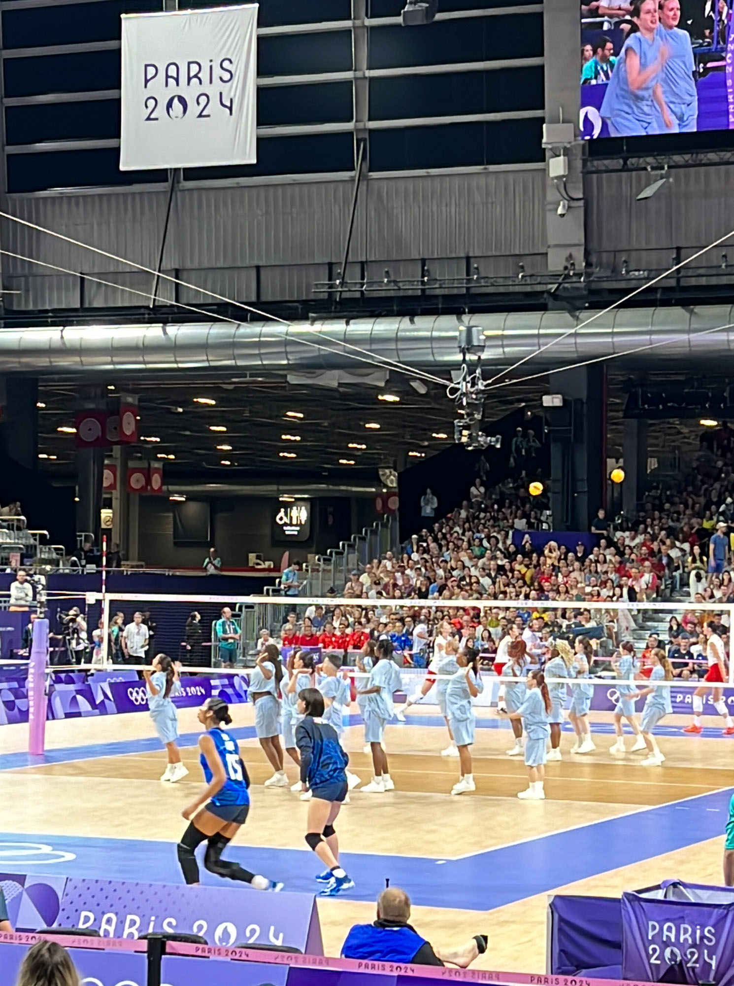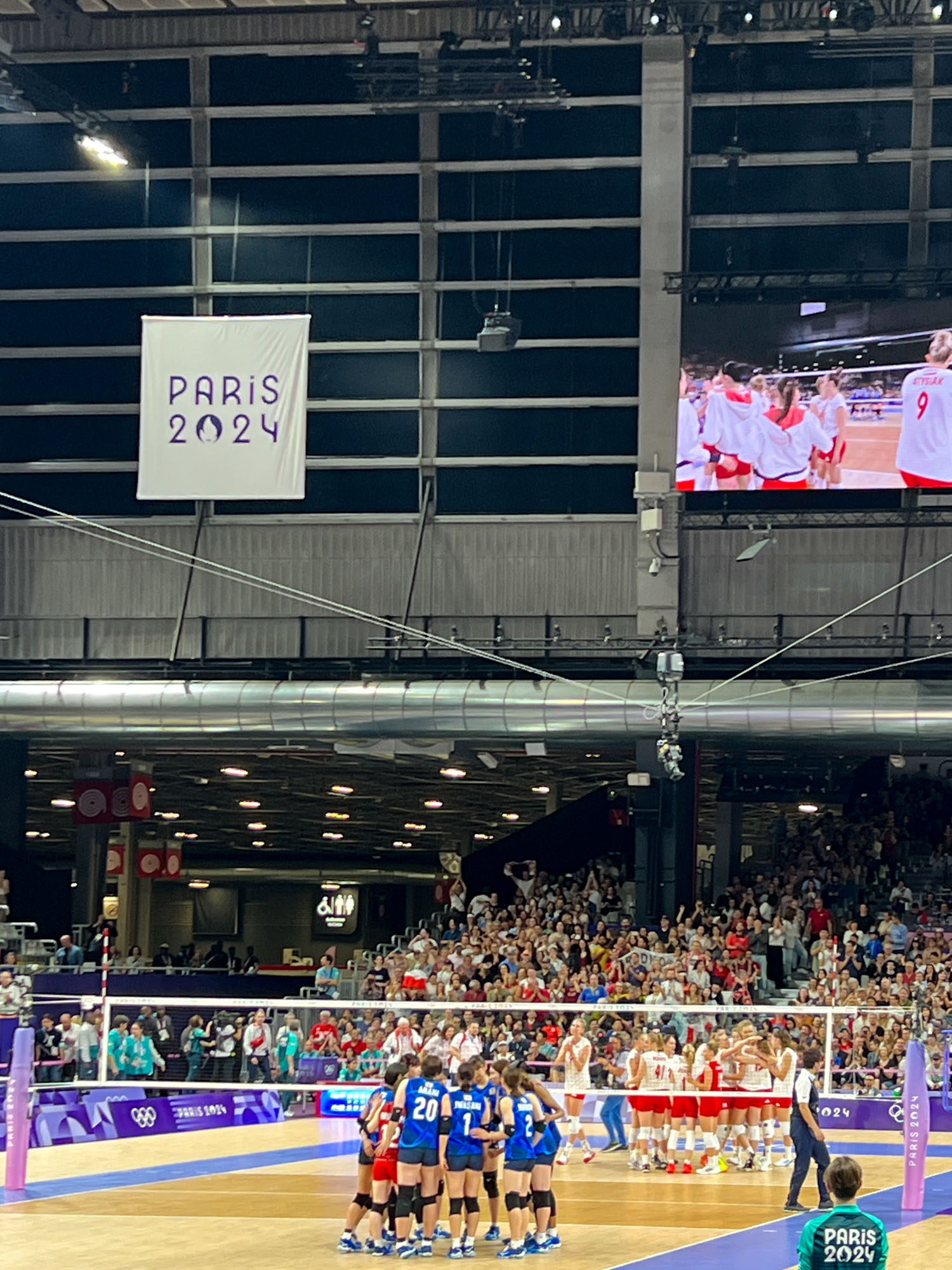 昨日27日のサッカーの試合の興奮も冷めやらぬまま、今日は女子バレーの試合を見に来ました!日本対ポーランド、ついに日本代表チームの試合です。実はもともとは予定になかったのですが、やはり一度は日本🇯🇵の試合を応援したい、と直前に思いつき、3日前に公式のリセールサイトでチケットをゲットしたのでした。一番良いカテゴリーの席で120€(+リセールの手数料12€)、もちろん安くはないですが、それでも予選の試合は比較的手に入りやすい価格です。