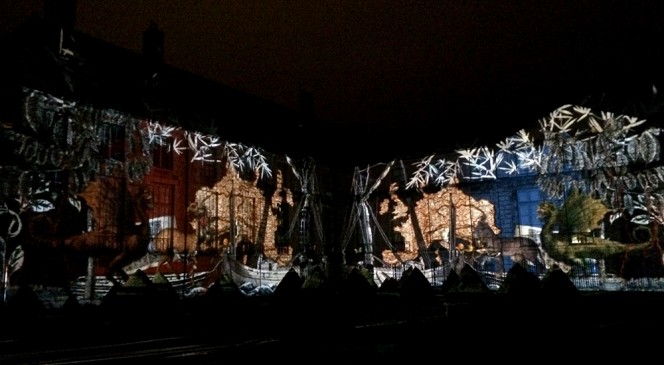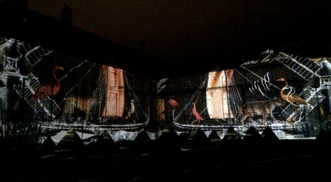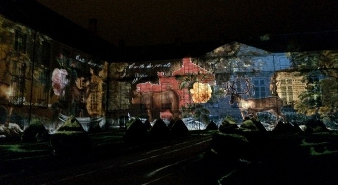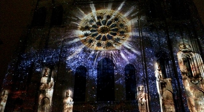 このイベントのメインとなるのは、やはりシャルトル大聖堂。2つの塔がそびえる側面、ステンドグラスの薔薇窓がある側面、庭の入り口に面した側面と、3つの壁面に異なるマッピングが施されています。荘厳な大聖堂に、音楽とともに映し出される色とりどりの映像で、まるで建物が生きているかのような錯覚を覚えます。庭園のイルミネーションもとても素晴らしいので、大聖堂と併せてぜひご覧ください。
