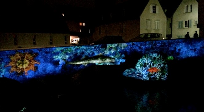 道に埋め込まれたブルーのライトを辿りながら、教会や図書館、ウール川沿いの橋など、ライトアップされているスポットを巡りましょう。夜がふけてくると案外寒いので、温かい格好をしていくと良いですよ。