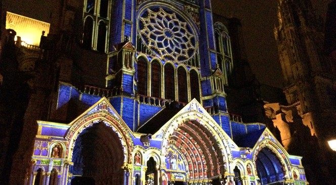 今年は4月12日〜10月12日まで開催で、29ものモニュメントやスポットが光と映像で彩られます。大聖堂はもちろん、庭園、美術館、図書館、協会、旧市街のパブの壁、ウール川沿いの橋と、見どころがたくさん。道に埋め込まれた青いライトを目印に進んで行くと、すべてのライトアップが見られる仕組みになっています。今の季節は夜9時頃には暗くなりますが、これから夏に向けてどんどん日が長くなるので、夜空に輝く光を満喫するには夜10時頃からスタートするのが良いかもしれません。すべての箇所を回ると2時間はかかると思います。パリから来られる方は、シャルトルに泊まる必要があるので前もってホテルの手配をしておくことをおすすめします。