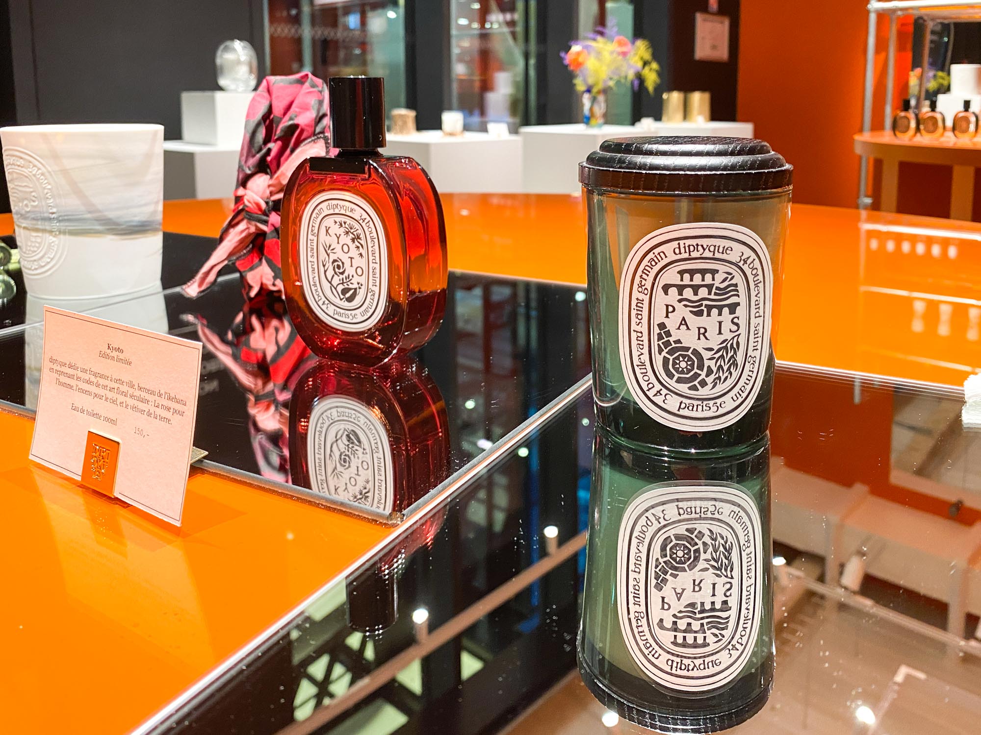 展覧会の近くには期間限定ブティックもオープン。限定コレクションやオブジェを始め、ディプティックの素敵な香りの世界が広がっています。