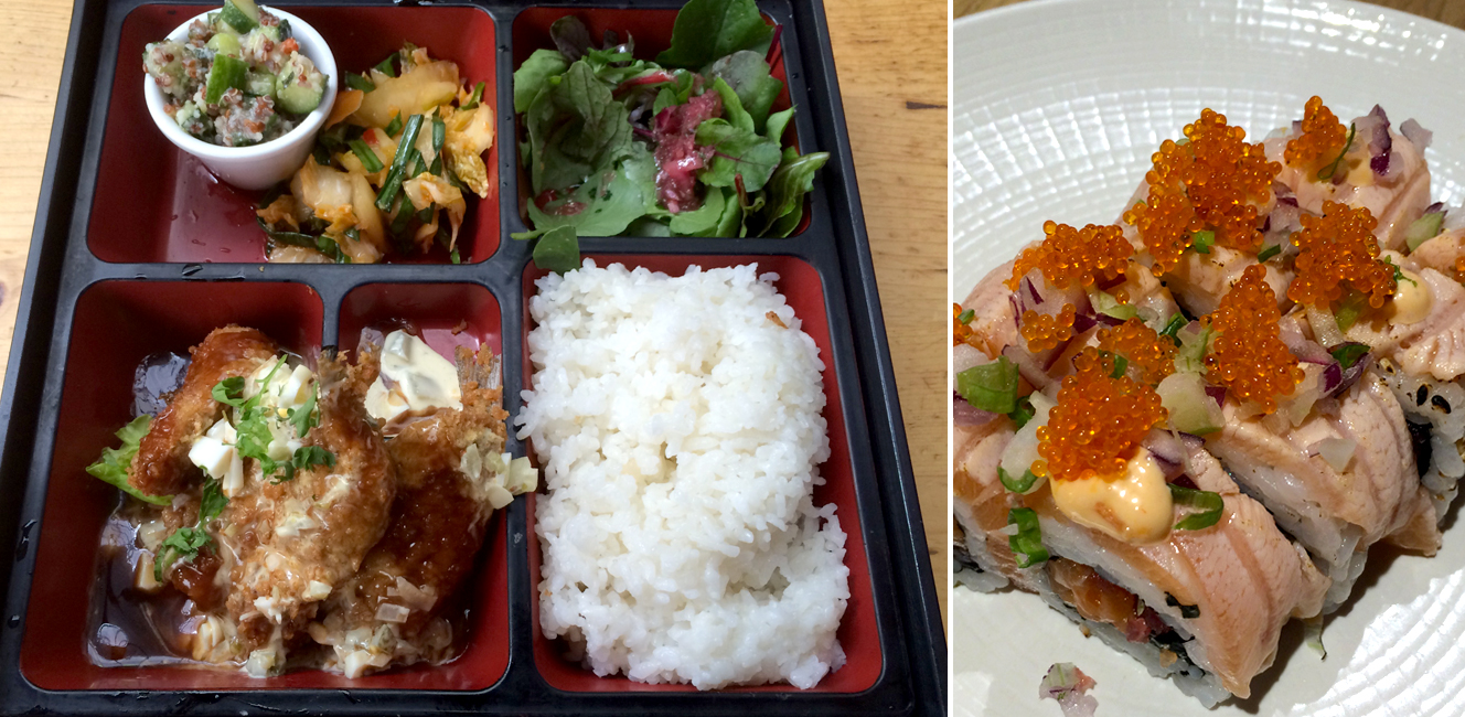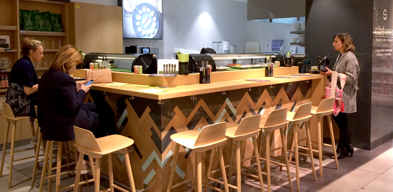 もうひとつは、ギャラリー・ラファイエットの向かい側にあるラファイエット・グルメのお寿司屋さん「Côté Sushi」。パリに数店舗を構えるチェーン店で、ラファイエット・グルメでは気軽に創作寿司が楽しめます。お刺身もセビーチェ風に香味ソースがかかっていたり、マンゴ&アボカドのキャタピラ巻きや、ちょっと甘いタレをからめたお蕎麦もあります。