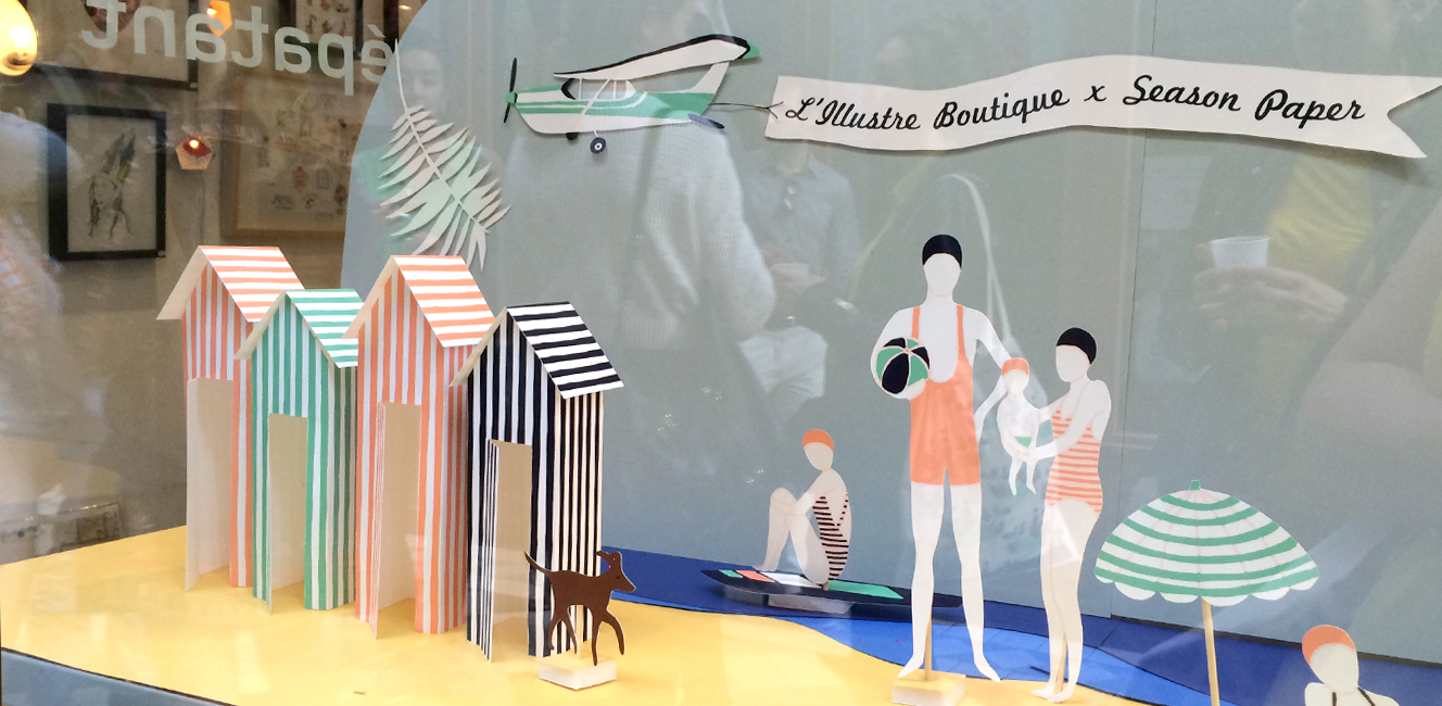 滞在中にちょうど、『100枚レターブック from Paris』で一緒にお仕事したクリエイターさん、Season Paper Collectionが手がけたショーウインドウのオープニングパーティーがあるというので、ちょこっと顔を出してきました。場所は、パッサージュ・デュ・グラン・セールにあるアート系のお店「リリュストル・ブティック」。このお店のオーナー、マルグリットさんは私たちの本『パリジェンヌのスタイルある暮らし』に登場してくださった女性の一人。