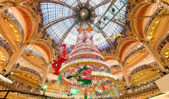 毎年、本館の丸屋根クーポールの下に大きなクリスマスツリーが登場して訪れる人の目を楽しませてくれるデパート、ギャラリー・ラファイエットですが、今年のツリーはどうもいつもと違って逆さまらしい、という話は以前お知らせしたとおりです。