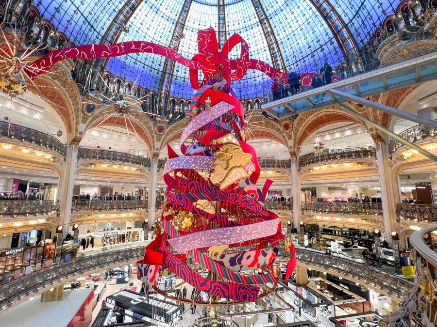 毎年注目を集める、オスマン通りのギャラリー・ラファイエット本館ドーム下の巨大クリスマスツリーが今年も登場しました!2015年はゴールド、2016年はホワイト、そして2017年はポップでカラフル、2018年はちょっとシック…