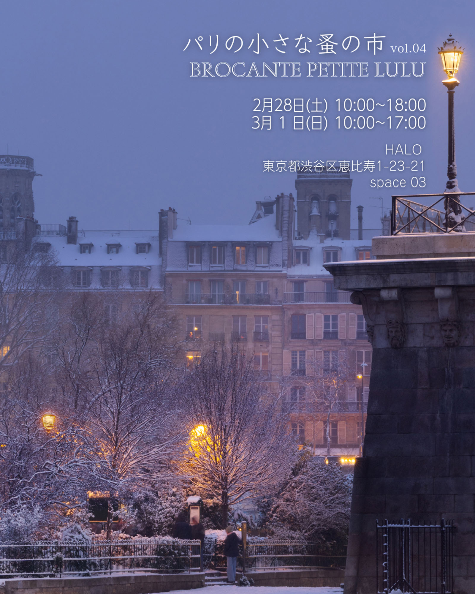 トリコロル・パリのガイド本『ぎゅっと旅するパリ 暮らすように過ごすパリ』でもご紹介した、綾子さん・クリストフさん・Luluちゃんのアンティークのお店「ブロカント・プティット・ルル」が、2年ぶりに東京で小さな蚤の市を開催します!期間は2月28日(土)、3月1日(日)の2日間。