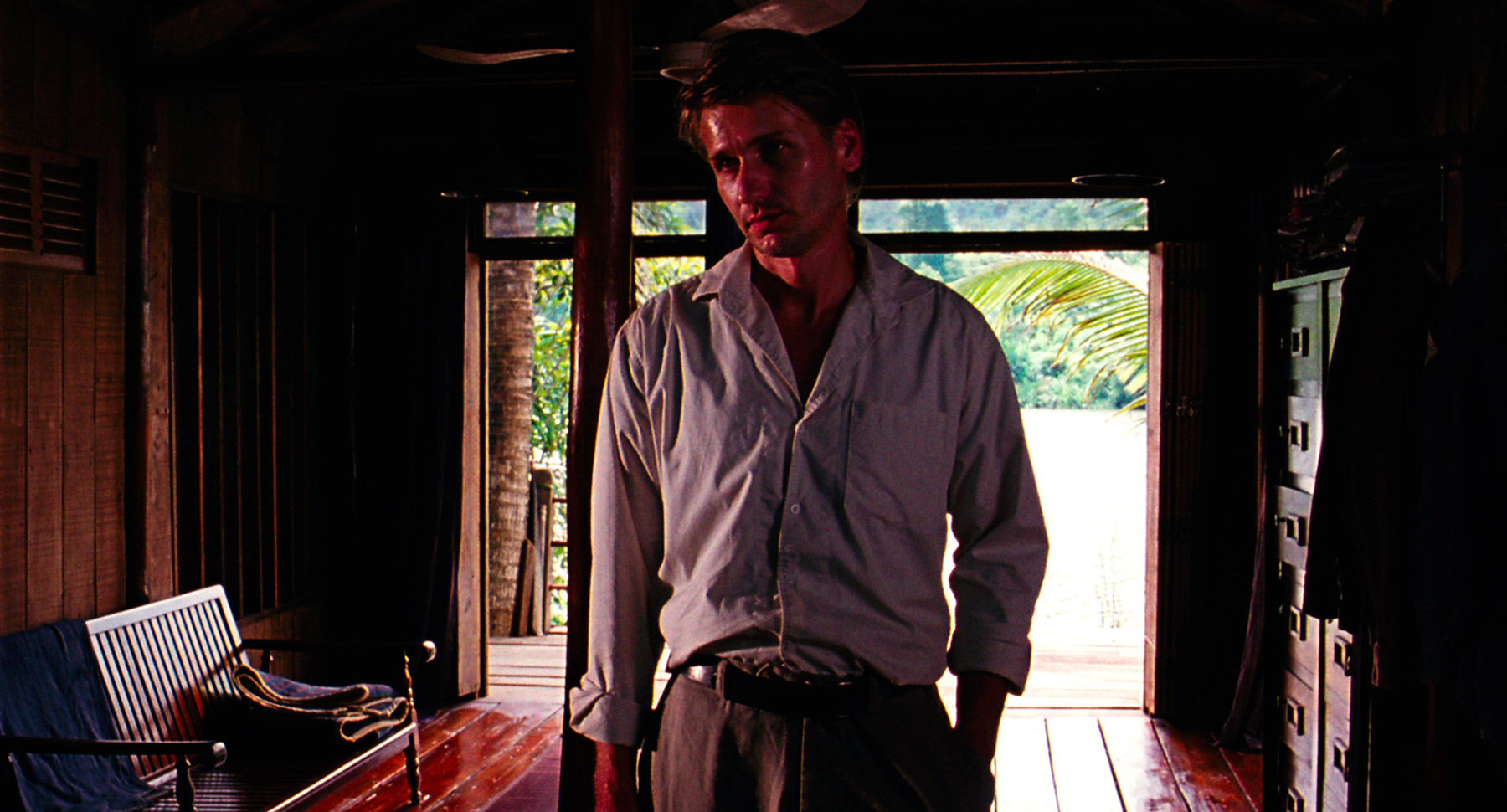 東南アジア奥地の河畔にある小屋で暮らす白人の男オルメイヤー。彼は現地の女性との間に生まれた娘を溺愛し外国人学校に入れるが、娘は父親に反発するように放浪を重ねていく。『地獄の黙示録』(79)のもとになった「闇の奥」で知られるイギリスの作家ジョゼフ・コンラッドの処女小説を脚色。時代も場所も明かされず抽象化された設定の中で、狂気と破滅の物語が繰り広げられる。原作の持つ実存主義と家父長制という重苦しいテーマを孕みながらも、アジアの街並みを自在に歩き回る娘を横移動で捉えたカメラが素晴らしく、幻想的なまでに美しい。