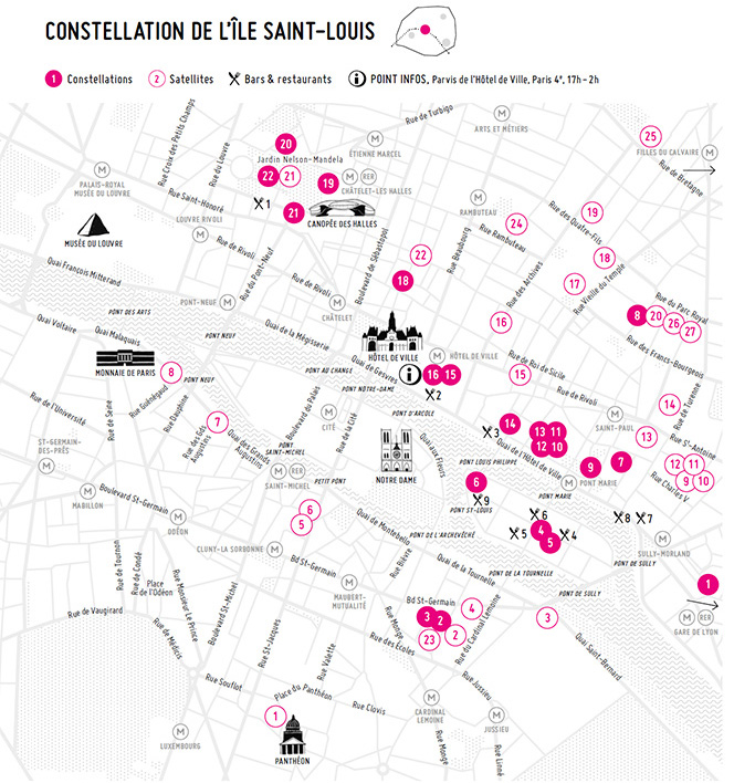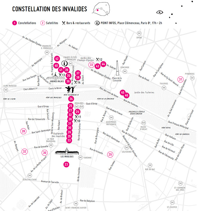 いつもなら、躊躇してしまうパリの夜のお散歩もこの日だけは特別。特に中心部のコースは旅行者でも慣れ親しんだ場所ばかりなのでオススメ。道路に引かれたオレンジのラインに沿って歩けば、メインのインスタレーションのみを迷わずに見学できますよ。メトロも遅くまで動いているので、パリジャンたちに混ざってパリの夜を体験してみてください。